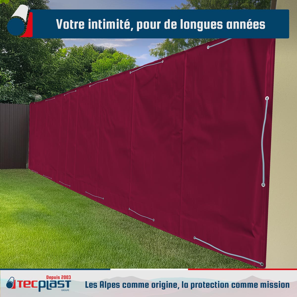 TECPLAST Bâche Brise Vue Rouge Bordeaux 2,5x3 m LP506BV - Garantie 5 ans - Brise vent occultant en PVC -