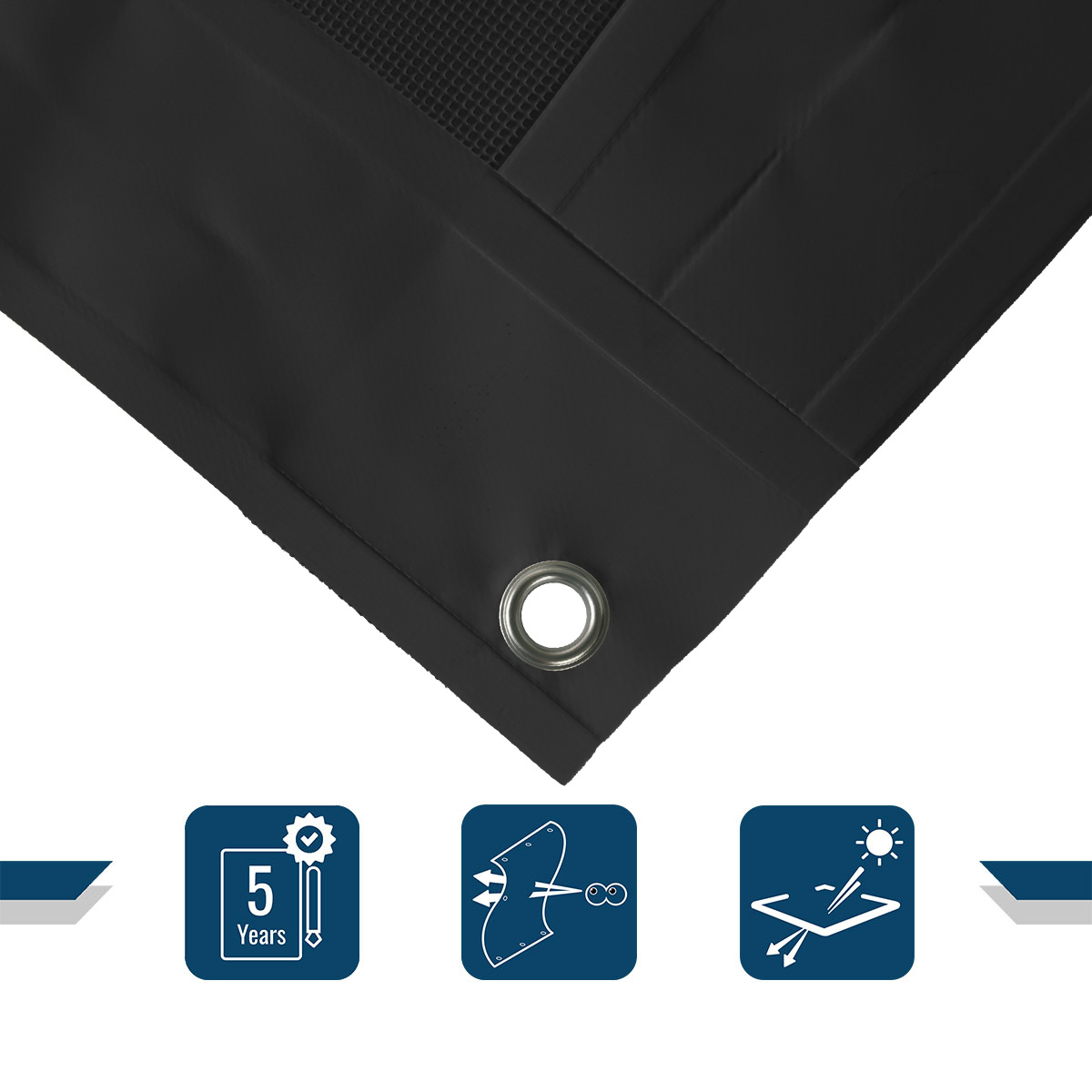 TECPLAST Bâche Carport Micro-Perforée 3,5x4 m Noire - Garantie 5 ans - MP460CP - Bâche PVC perméable - Ma