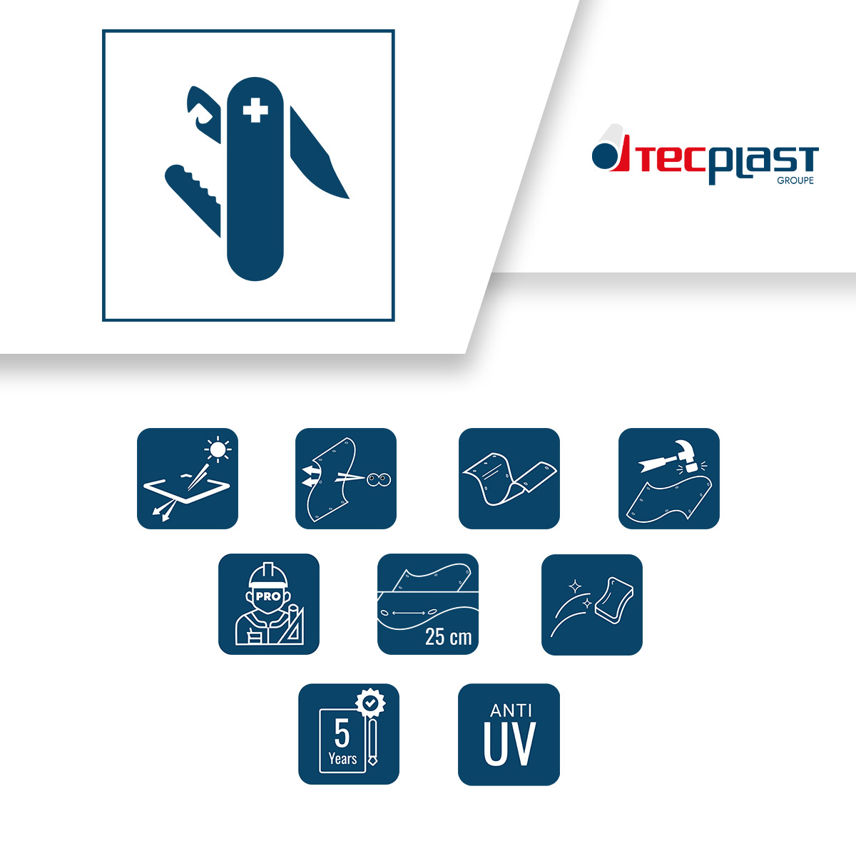 BÂCHE PVC MICRO-PERFORÉE TECPLAST MP460MU : RESPIRANTE ET POLYVALENTE