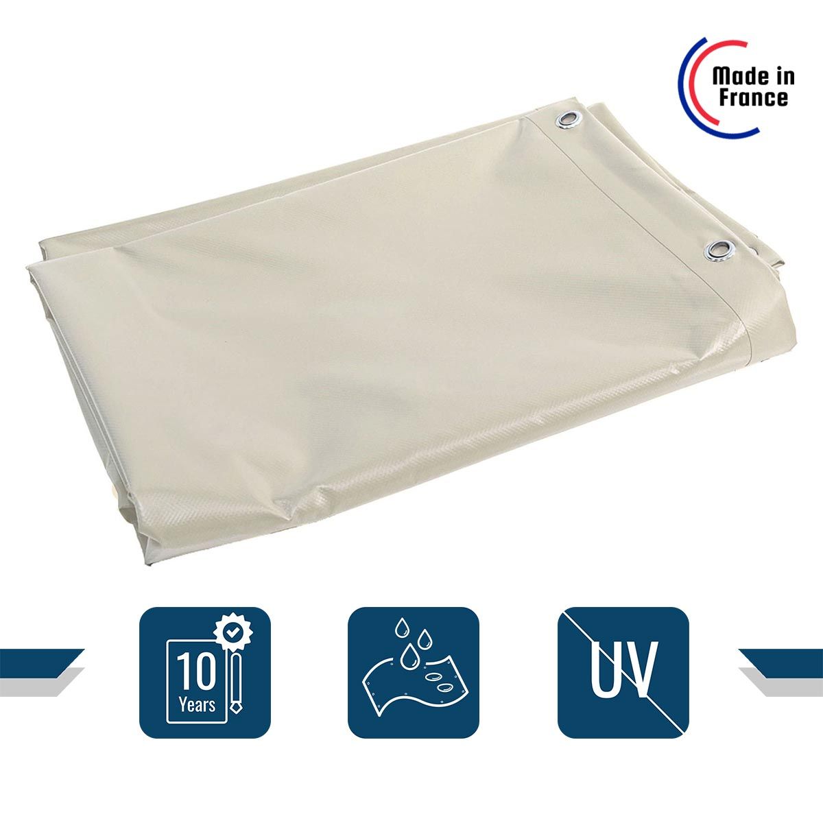 | Libellé | TECPLAST Bâche pour Carport Ivoire 2,5x4,5 m XP640CP - Garantie 10 ans - Toile PVC étanche pour abri de voiture - Made in France |