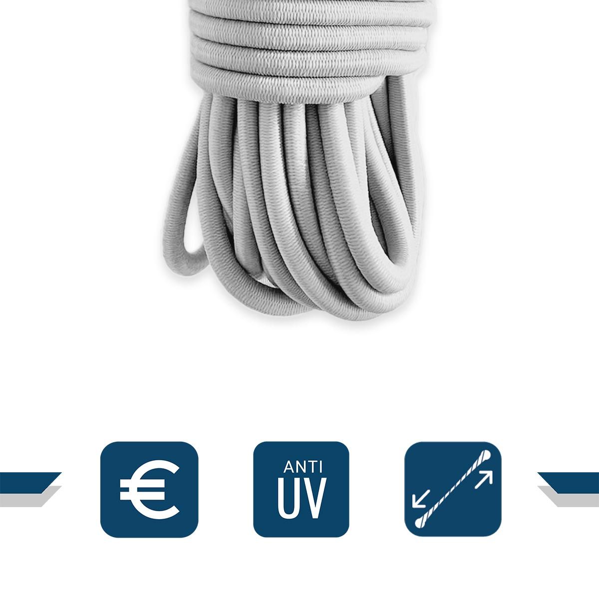 TECPLAST Sandow élastique Gris 20 mètres 8SW - Economique - Tendeur pour bâche de diamètre 8 mm