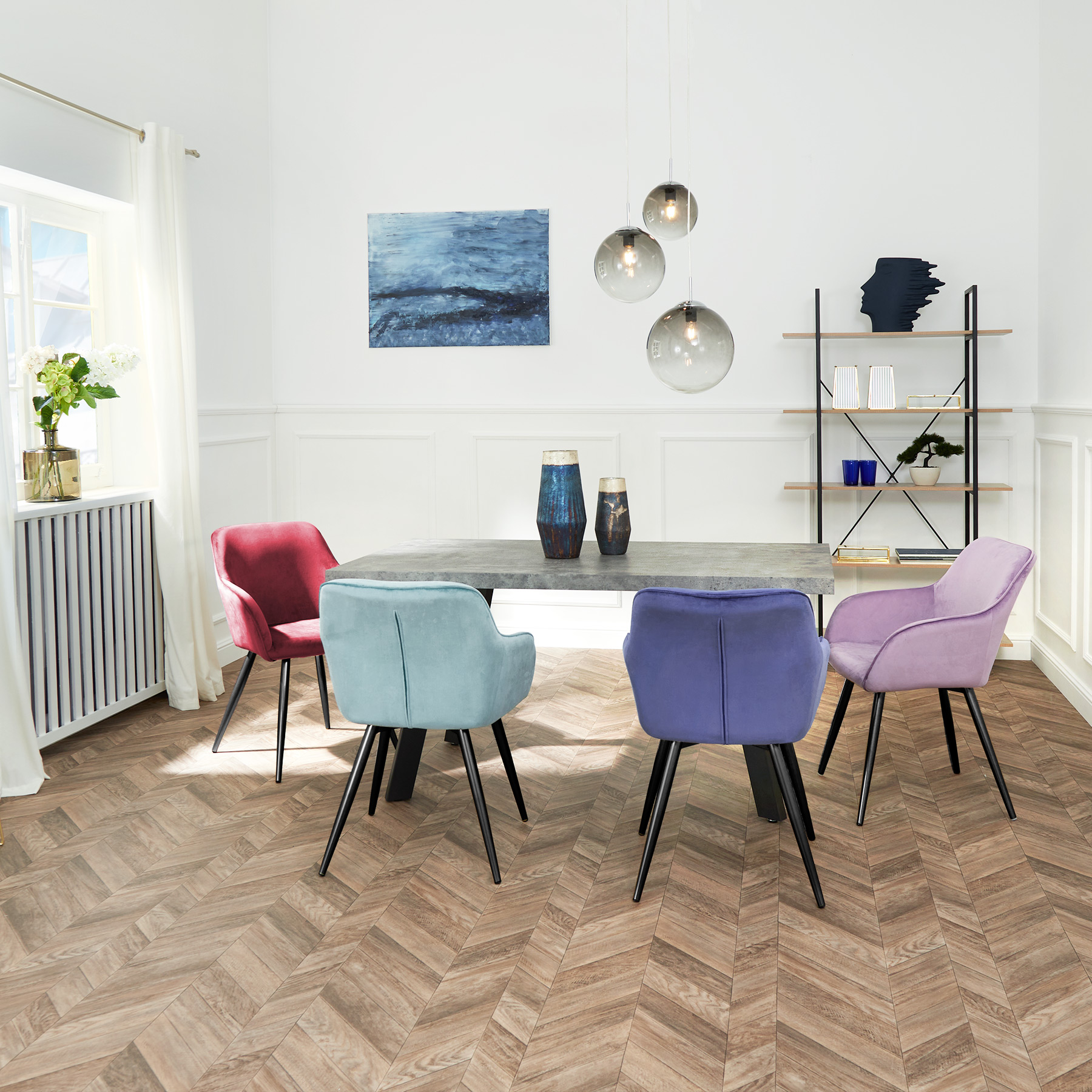 Notre chaise élégante rembourrée tectake effet velours ajoutera une touche glamour dans votre maison. Les différents revêtements sont disponibles dans une très large palette de couleurs et vous pouvez même combiner cette chaise avec votre intérieur. Le cadre en acier robuste vous assure une bonne stabilité et une grande résistance. Pour amortir le bruit et pour empêcher les rayures, les pieds élancés de notre chaise de salle à manger sont dotés d'embouts en plastique. Le dossier large et rembourré et les accoudoirs se caractérisent par un confort optimal : beau et pratique à la fois.