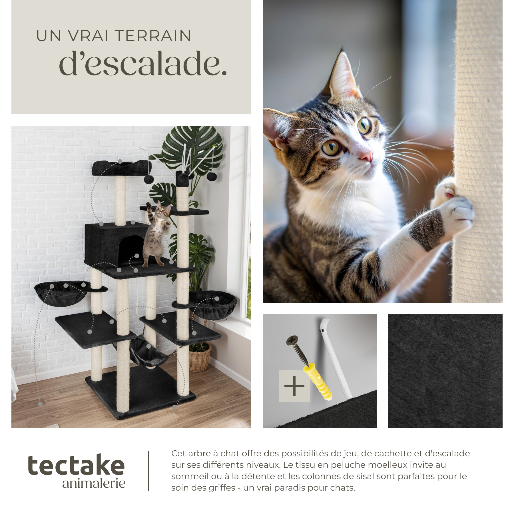 | Libellé | TECTAKE Arbre à chat 165 cm avec griffoir et plateforme d'escalade noir |