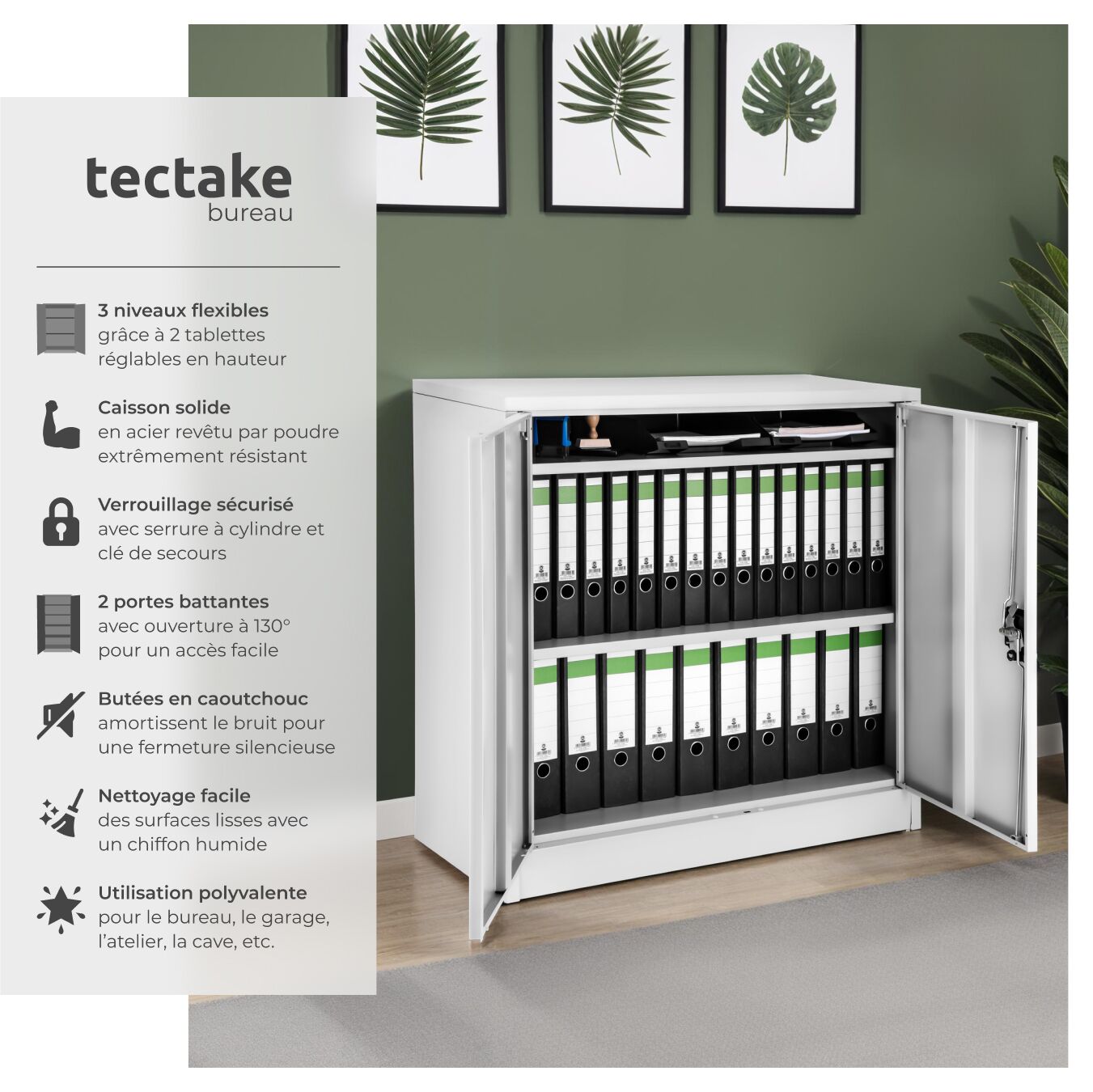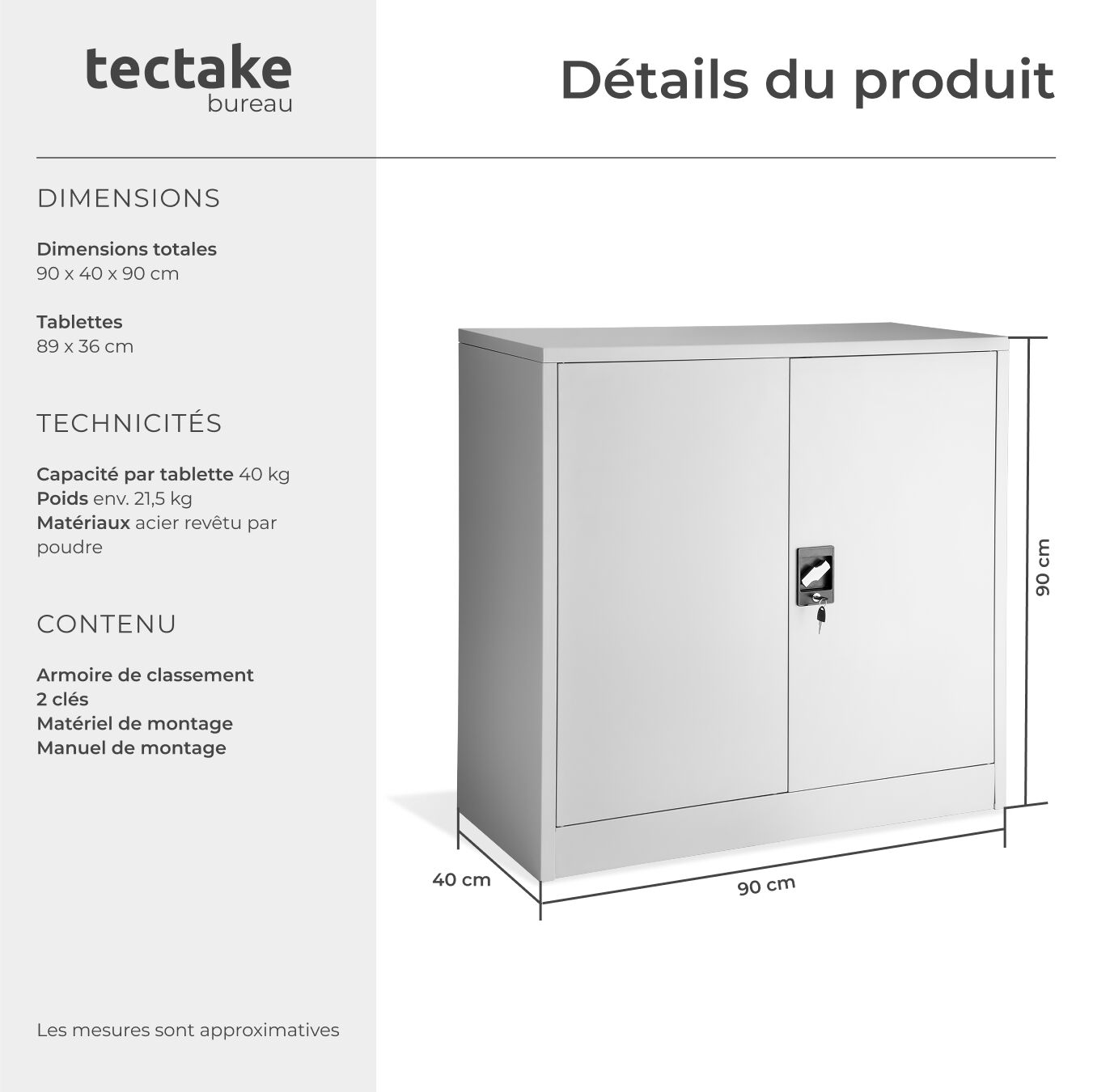 | Libellé | TECTAKE Armoire de classement en métal en acier lâqué époxy gris |