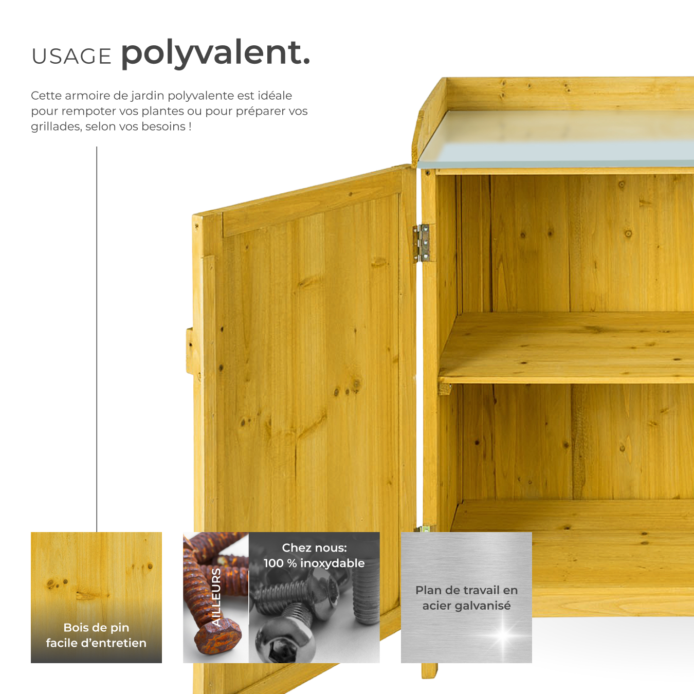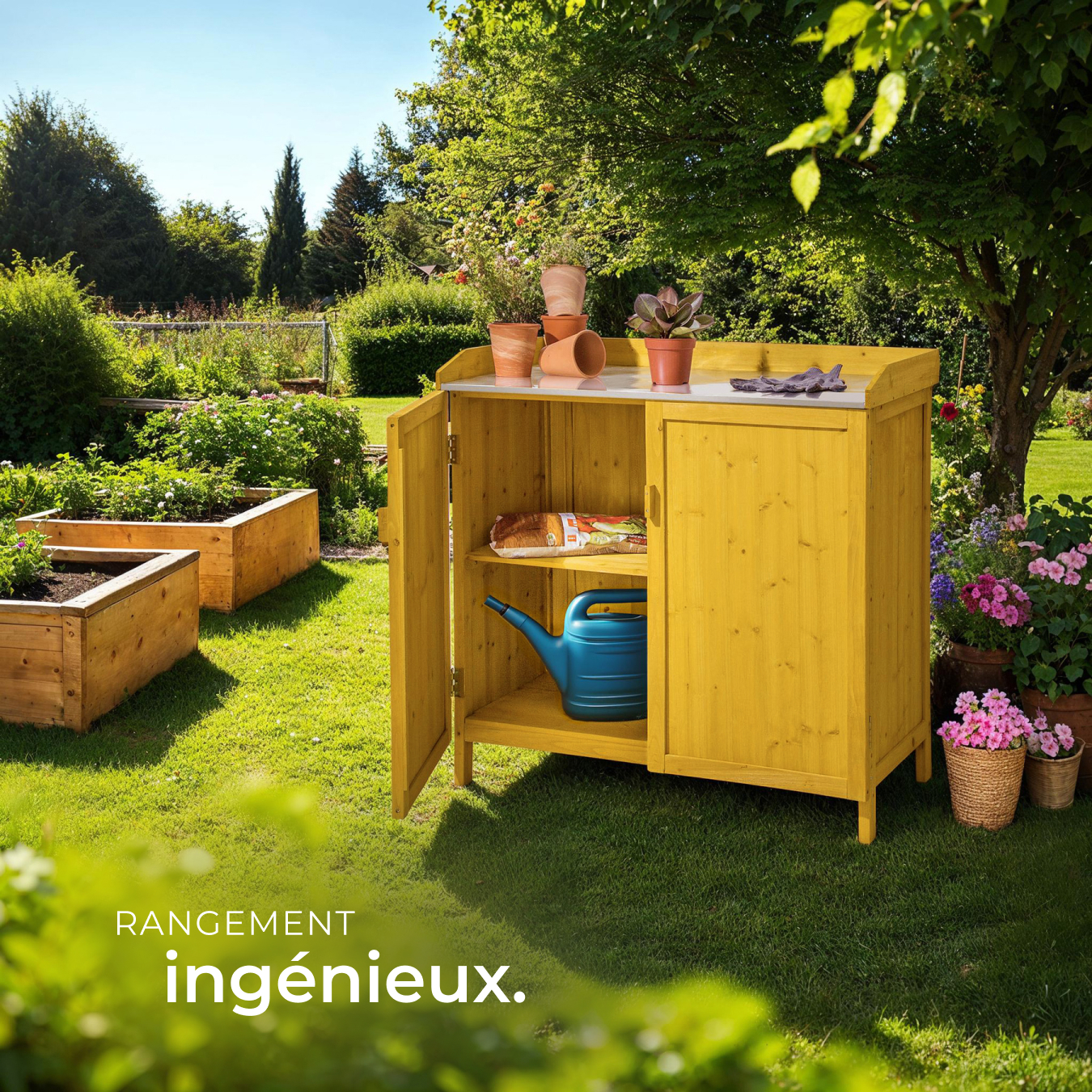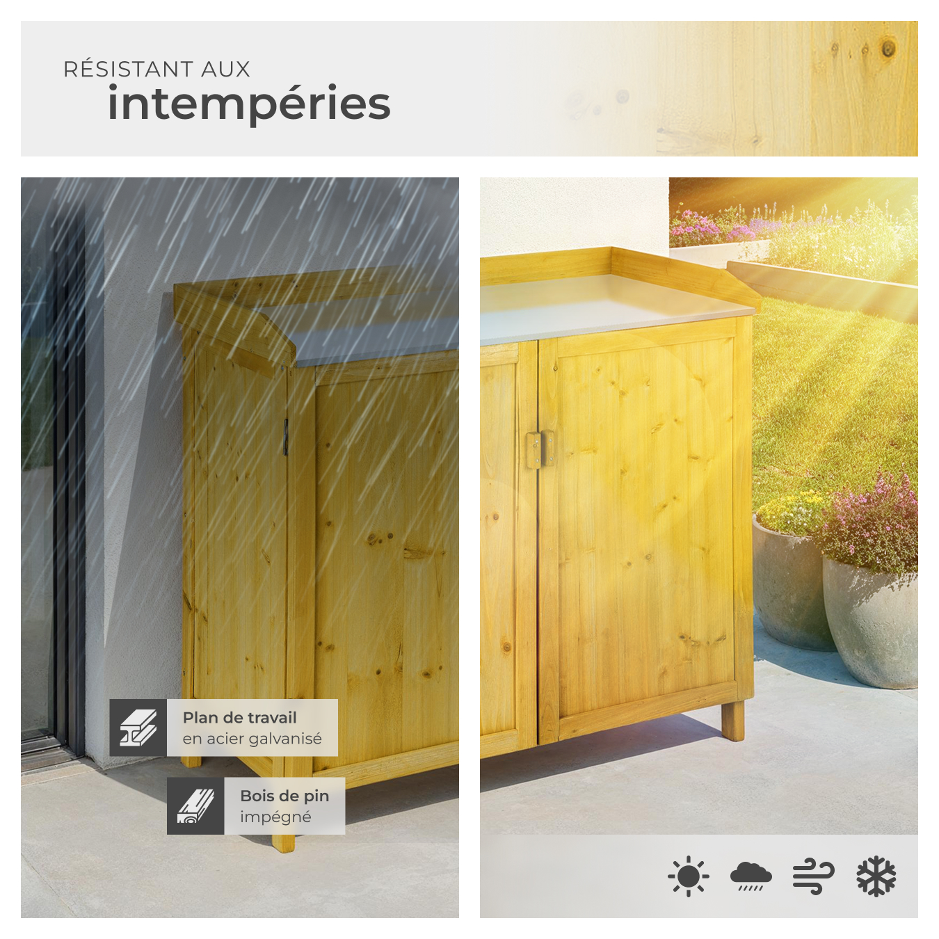 - Armoire de jardin avec plan de travail.