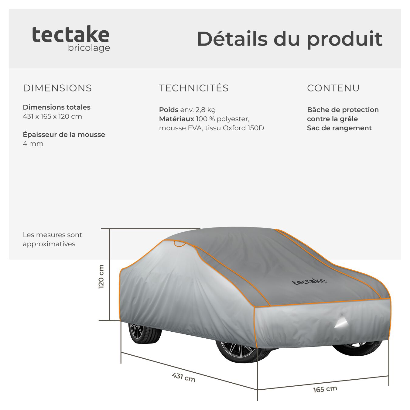 | Libellé | TECTAKE Bâche de voiture imperméable et respirante avec couche en mousse de 4 mm M (431 x 165 x 120 cm) gris |