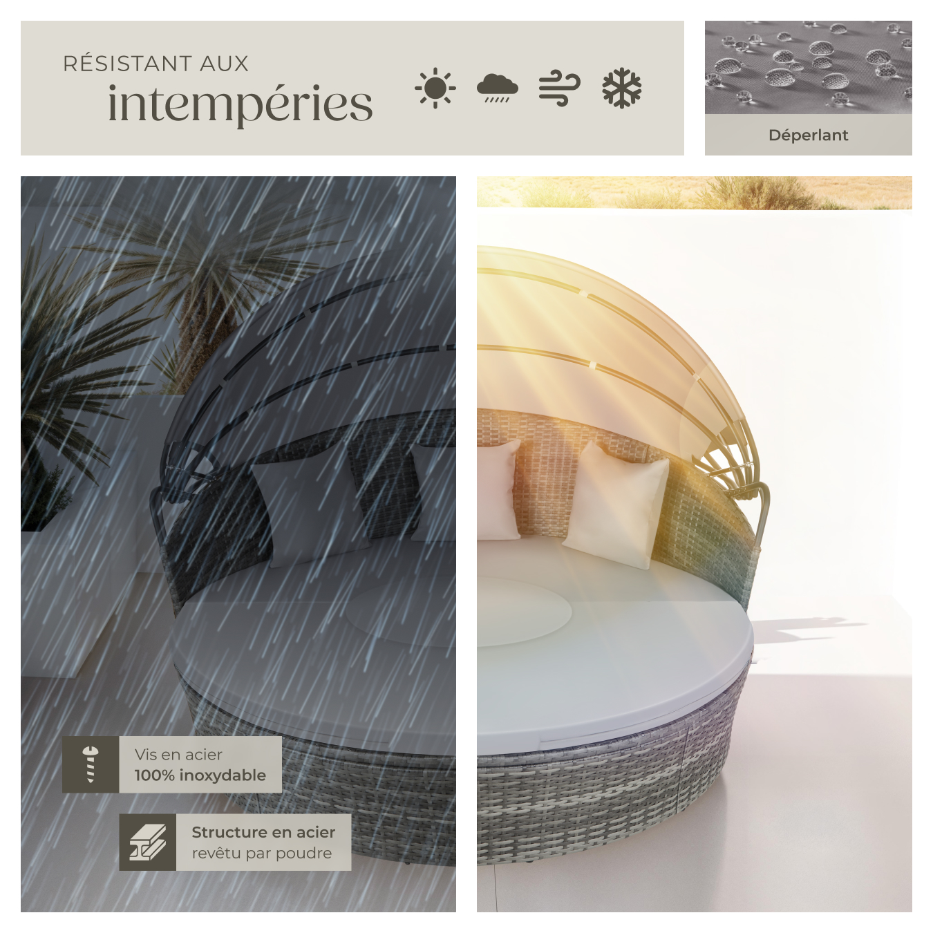 TECTAKE Bain de soleil rond au design contemporain luxueux robuste gris