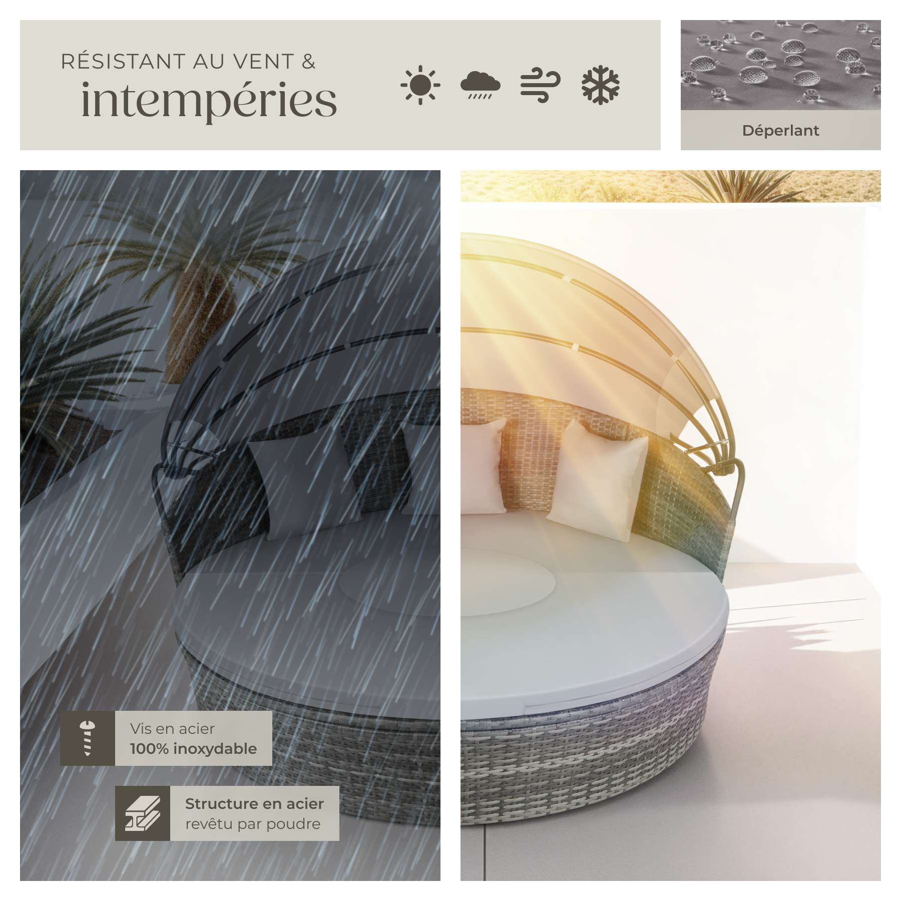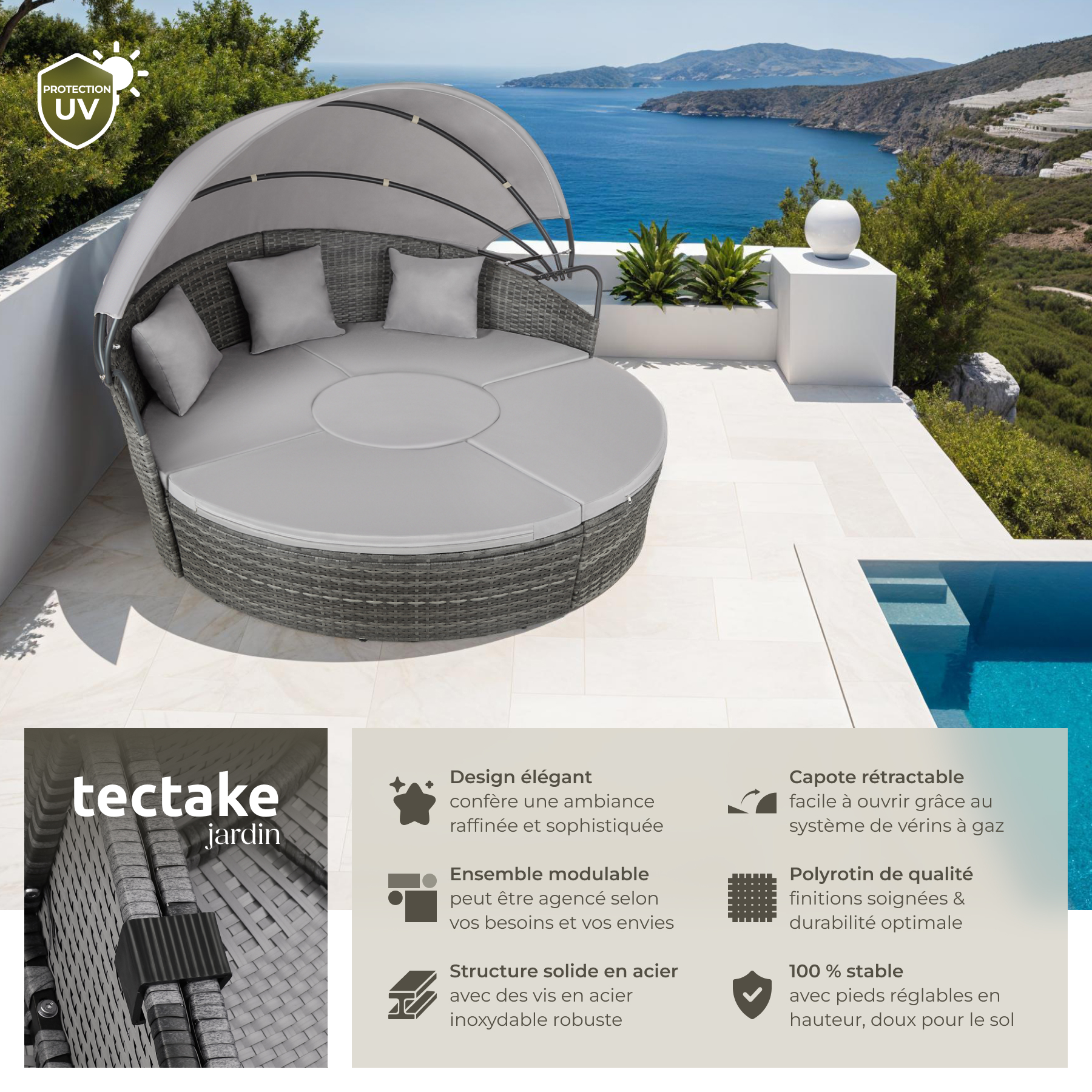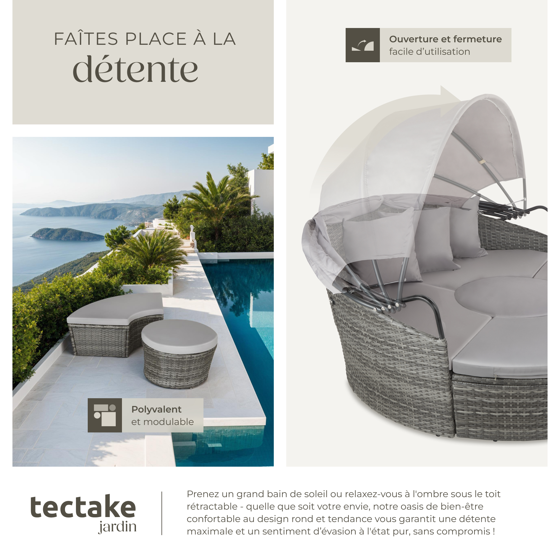 TECTAKE Bain de soleil rond au design contemporain luxueux robuste gris/gris clair