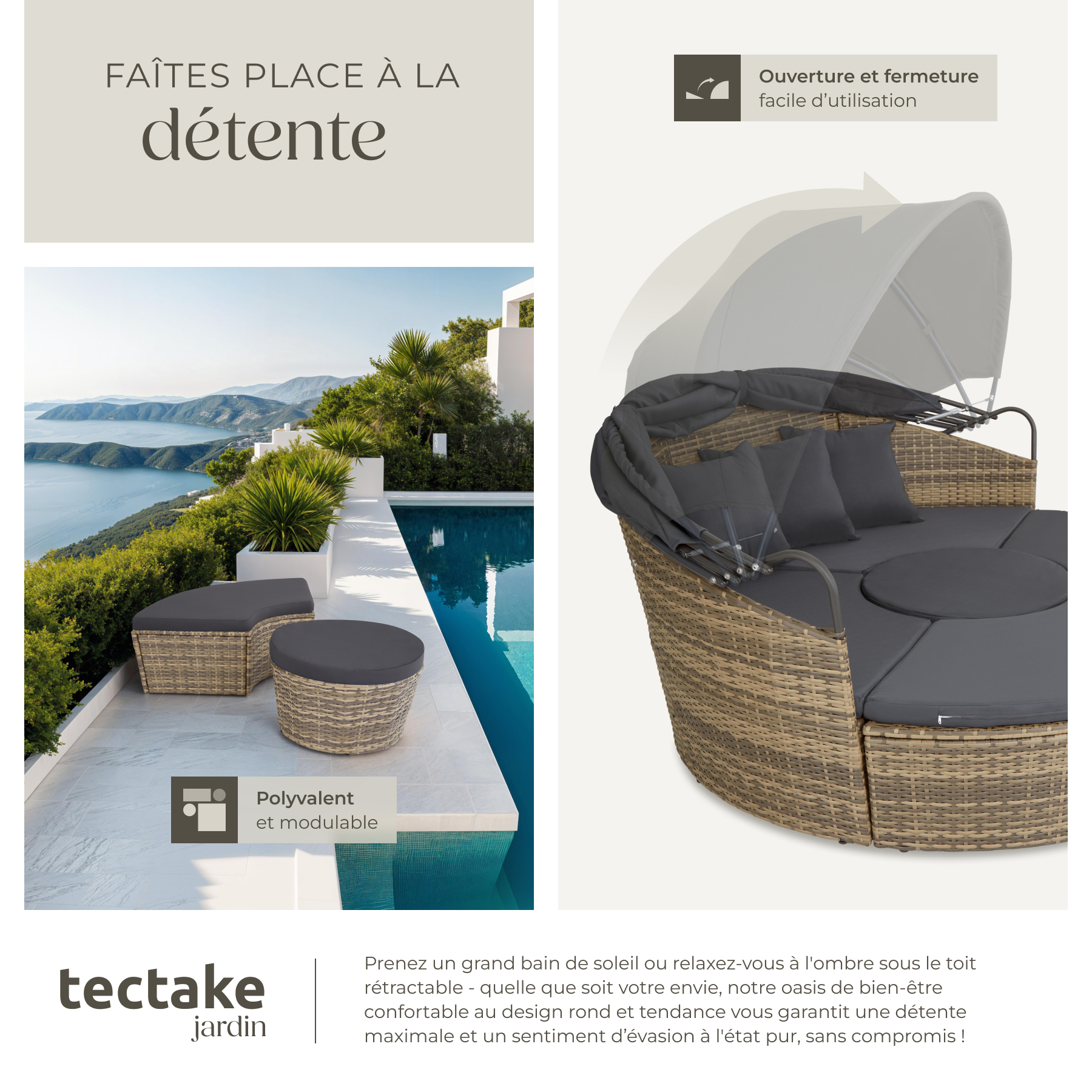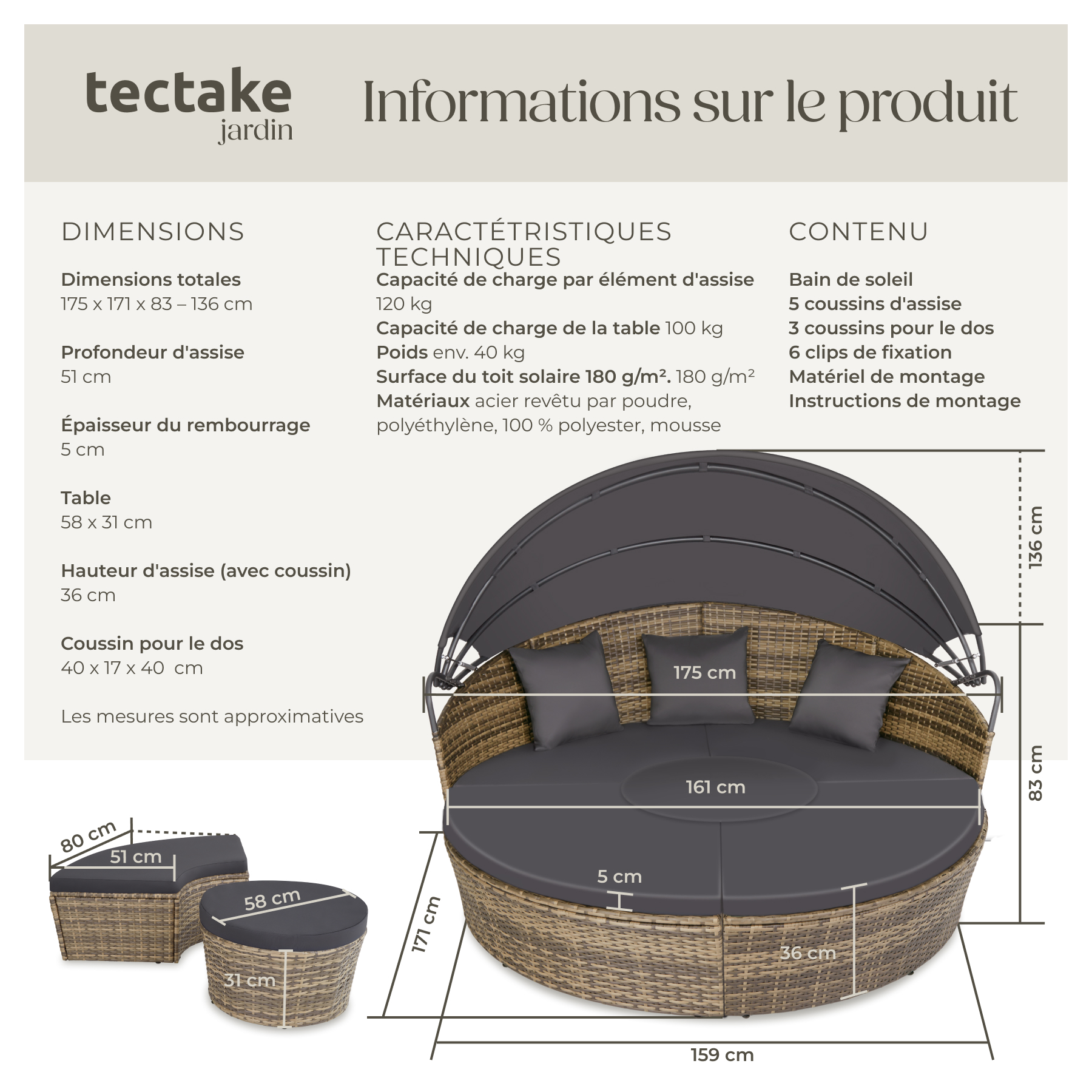 | Libellé | TECTAKE Bain de soleil rond au design contemporain luxueux robuste marron naturel/gris foncé |