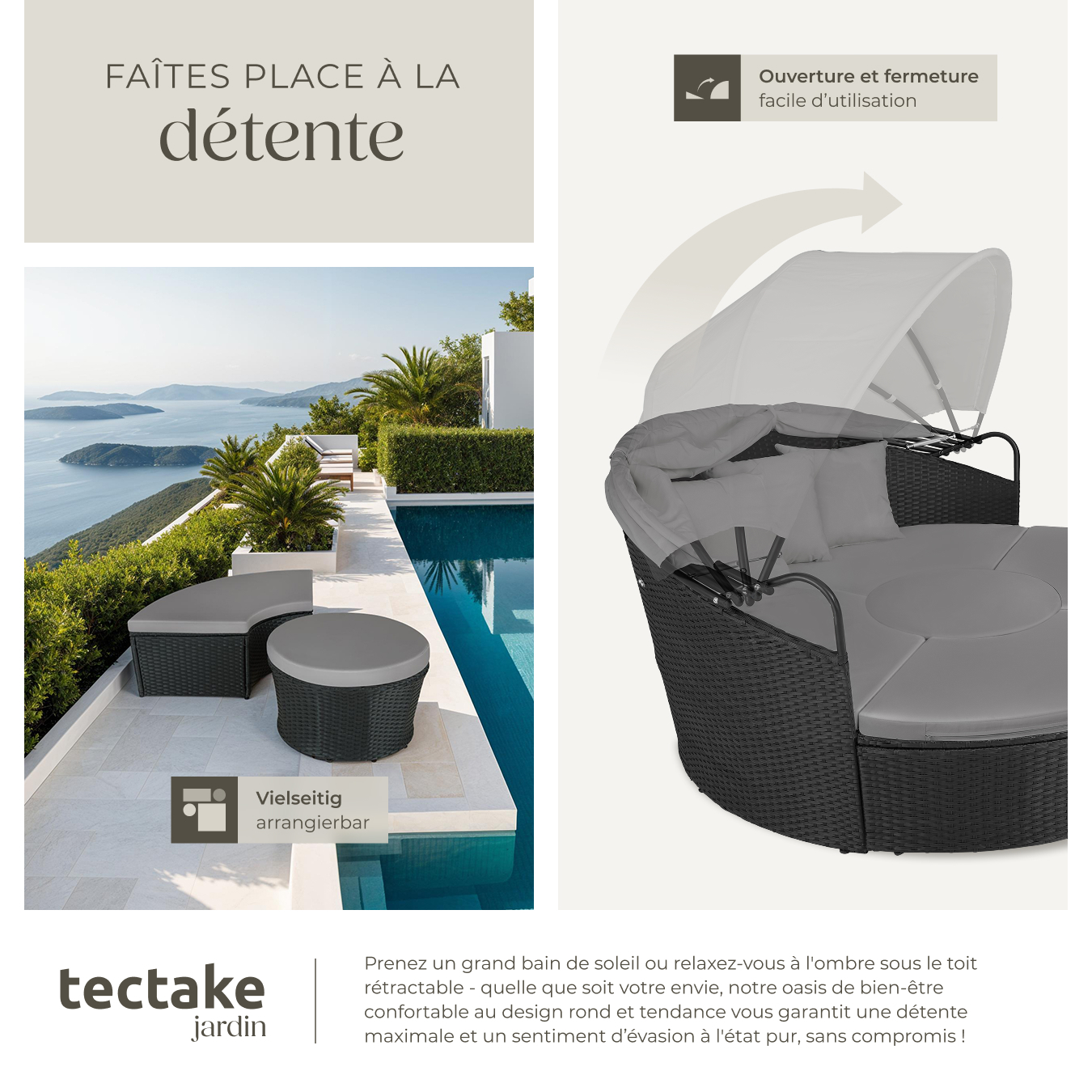 | Libellé | TECTAKE Bain de soleil rond au design contemporain luxueux robuste noir |