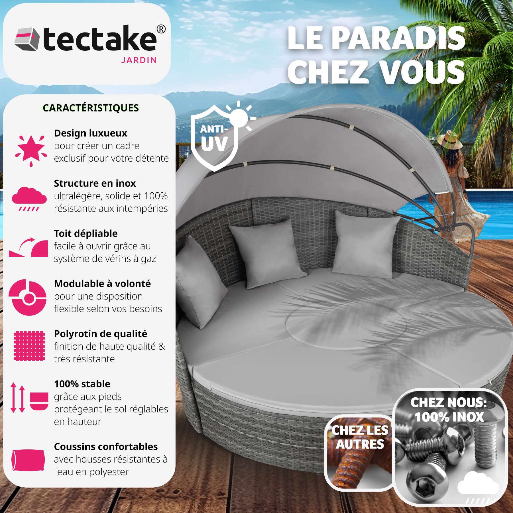 | Libellé | TECTAKE Bain de soleil rond Avec cadre en aluminium |