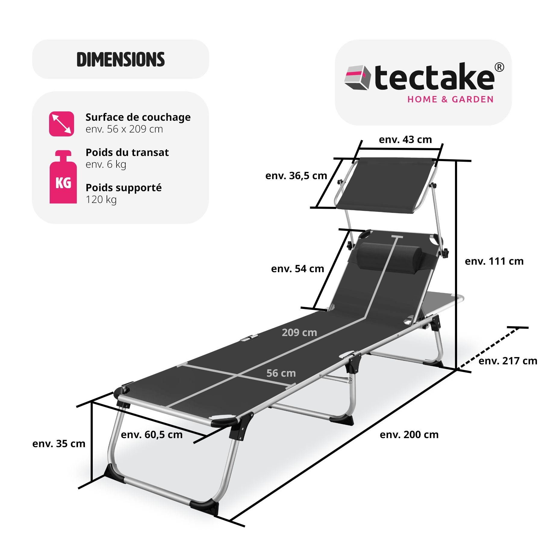 | Libellé | TECTAKE Bain de soleil Transat Chaise longue Pliable |