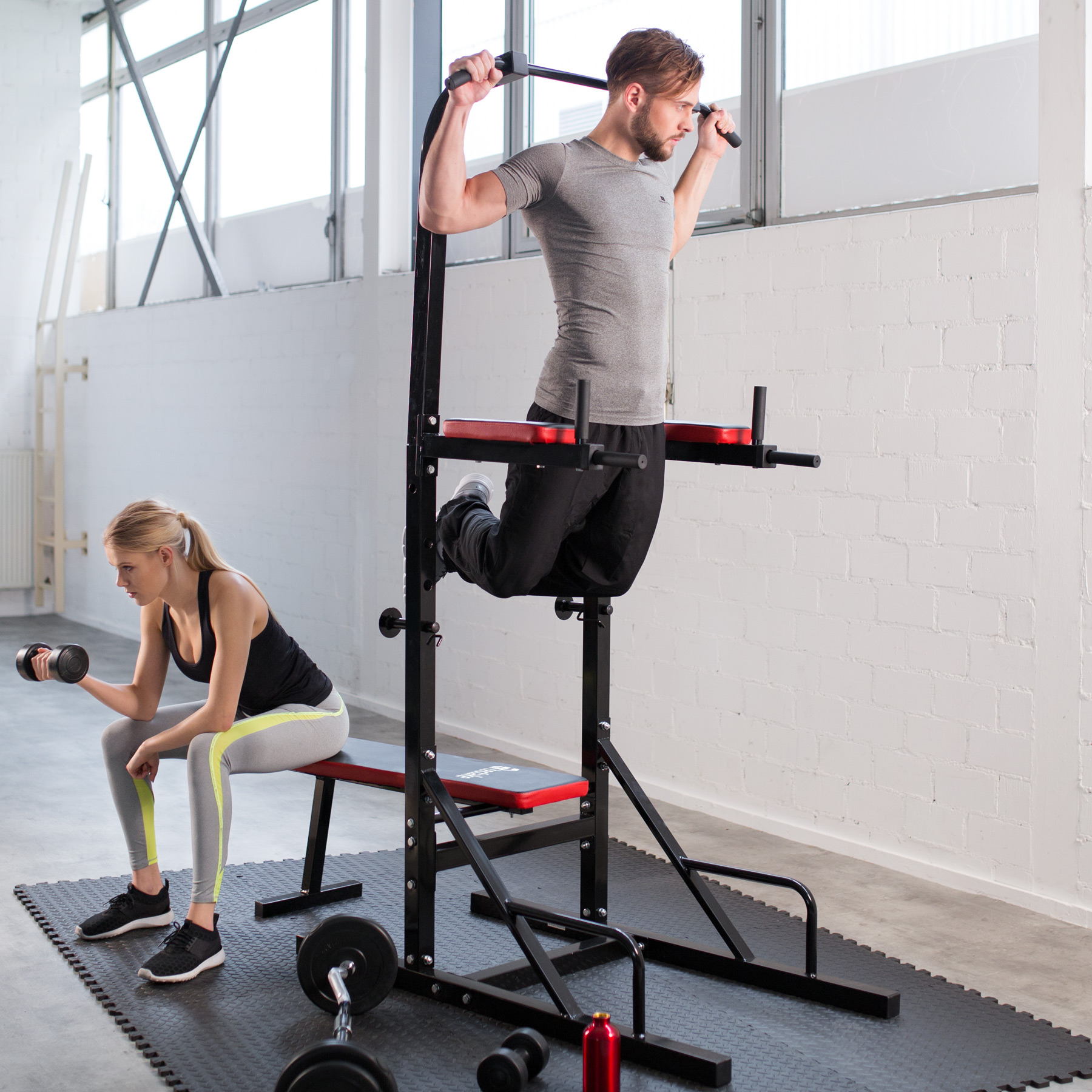 Banc de musculation pliable multifonction DIPS, Barre de traction, Banc d'haltère TECTAKE. Cette station DIPS vous permet de muscler de façon optimale les pectoraux, les triceps, le dos, les abdominaux et les bras. Elle est fabriquée en acier résistant et est idéale pour un usage à la maison.