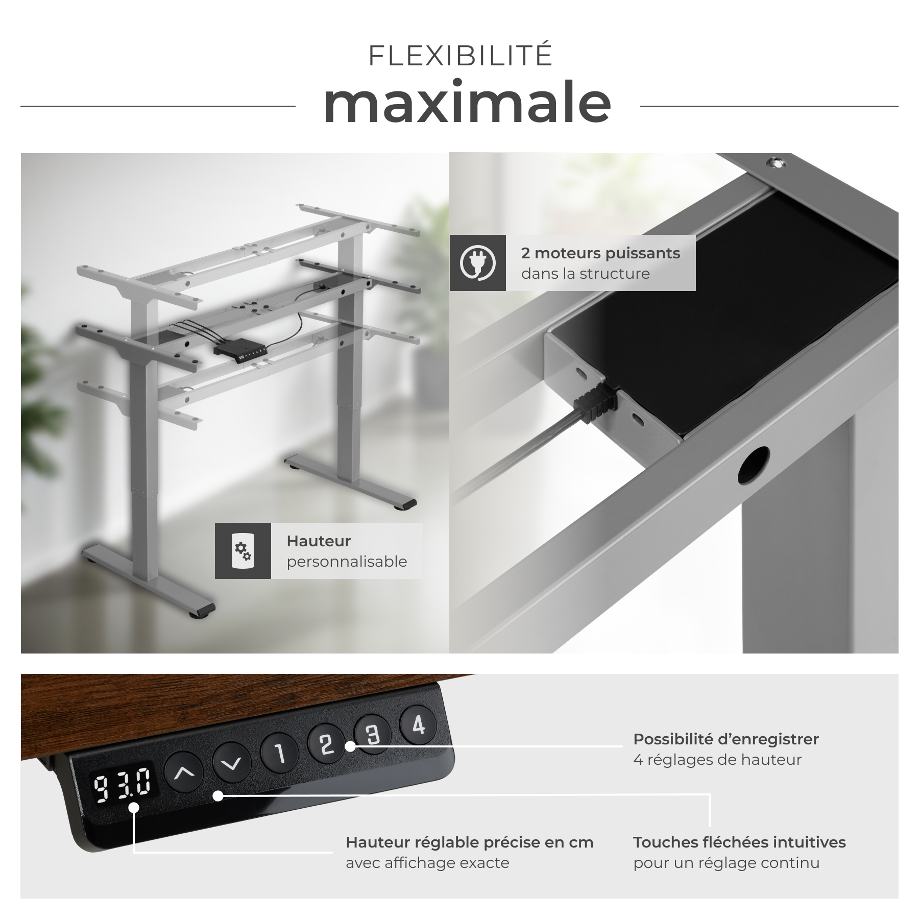 - Hauteur de cadre réglable électriquement et en continu