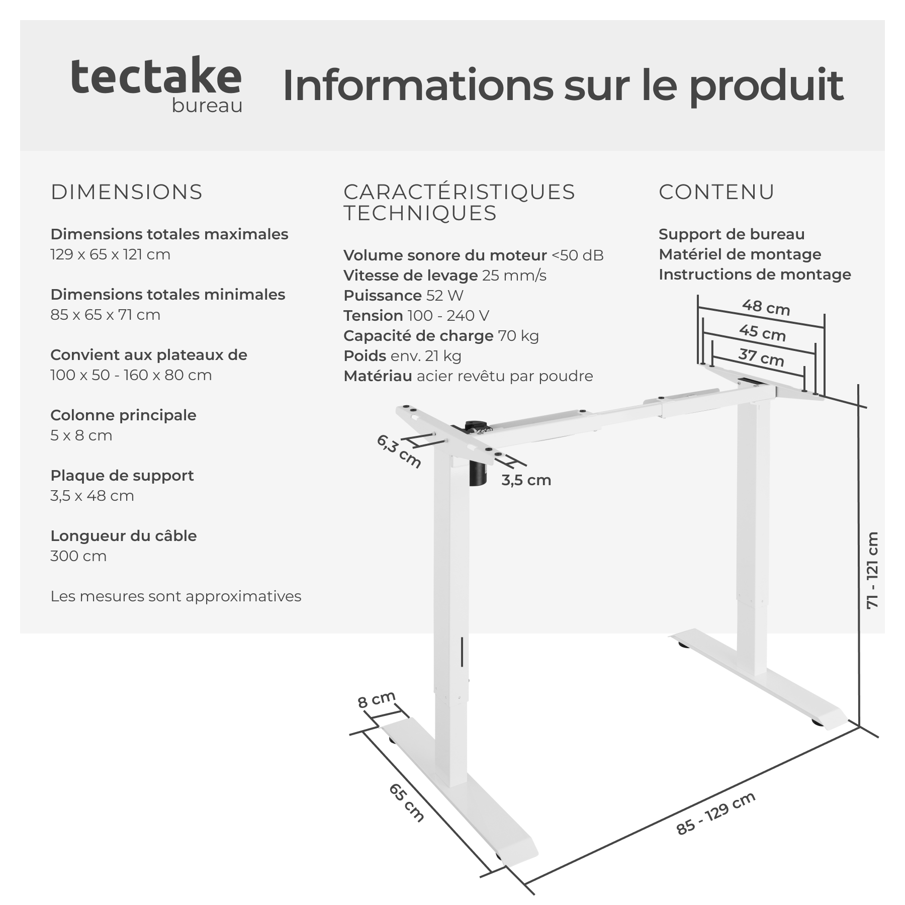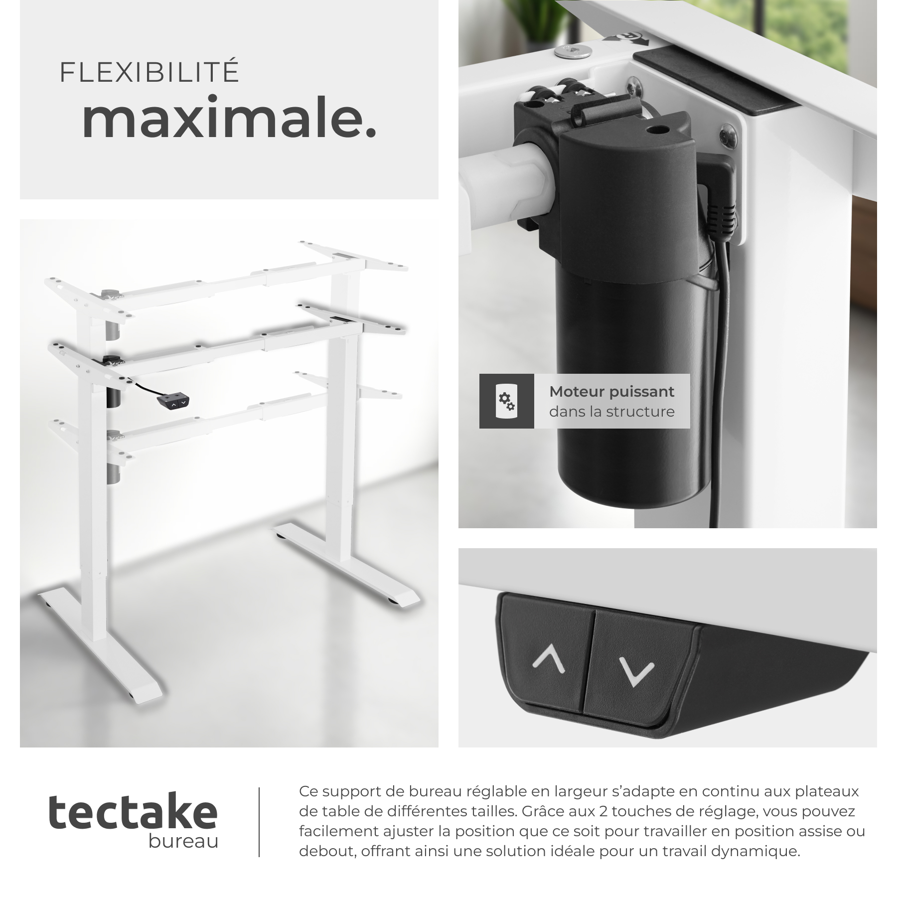 Libellé TECTAKE Cadre de bureau assis debout avec réglage électrique de la hauteur blanc