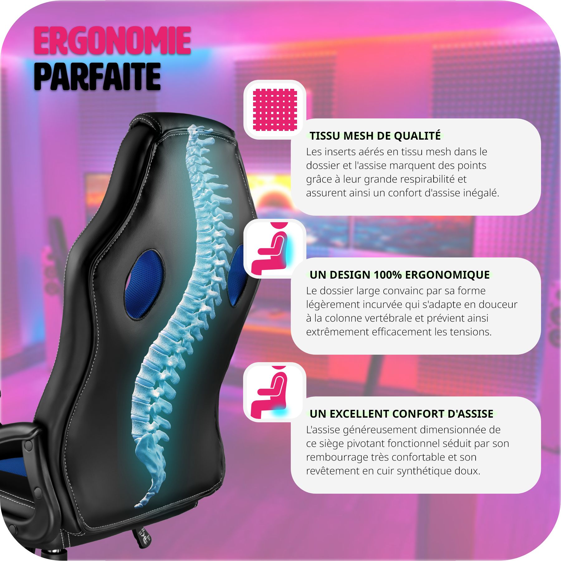 | Libellé | TECTAKE Chaise de bureau à forme ergonomique noir/bleu |