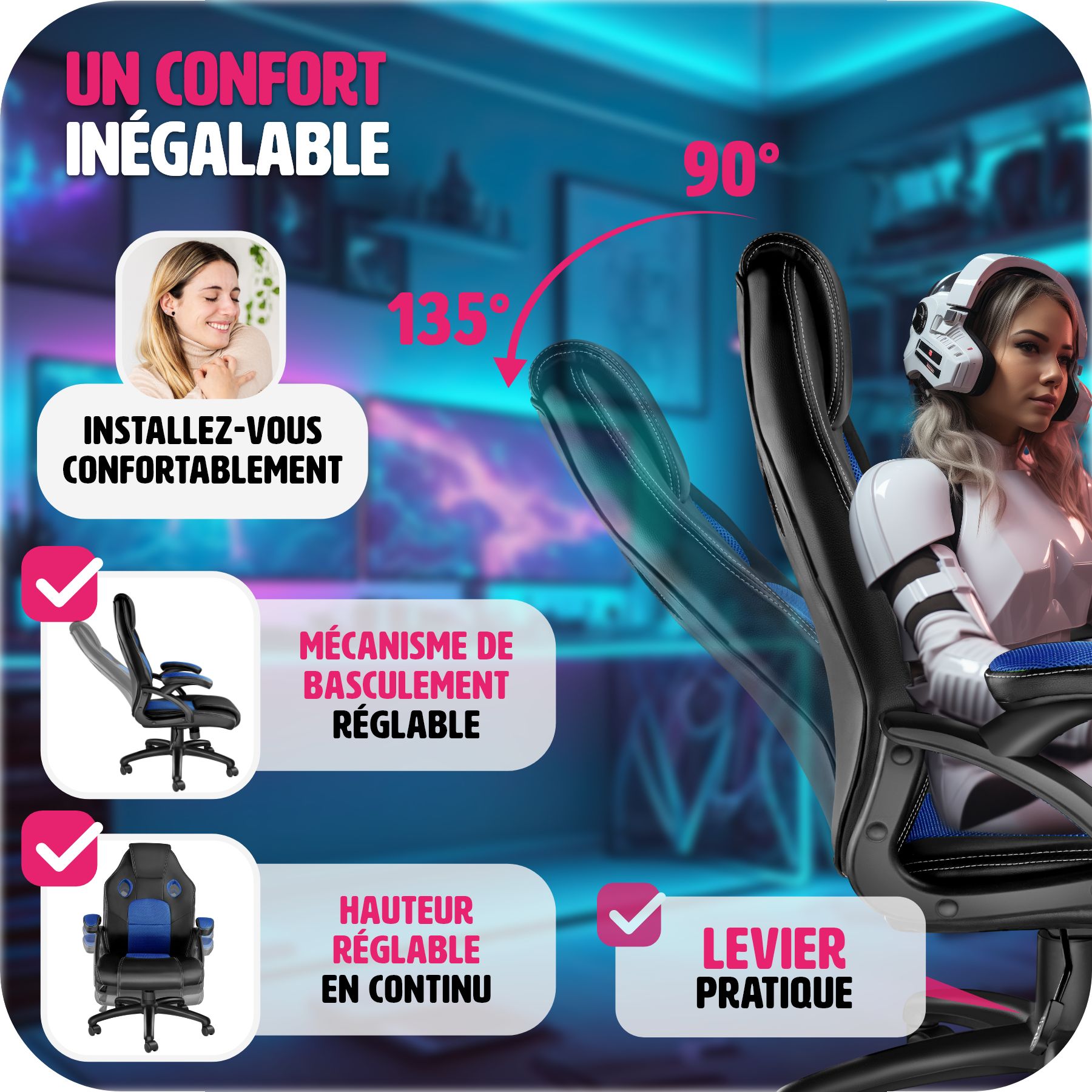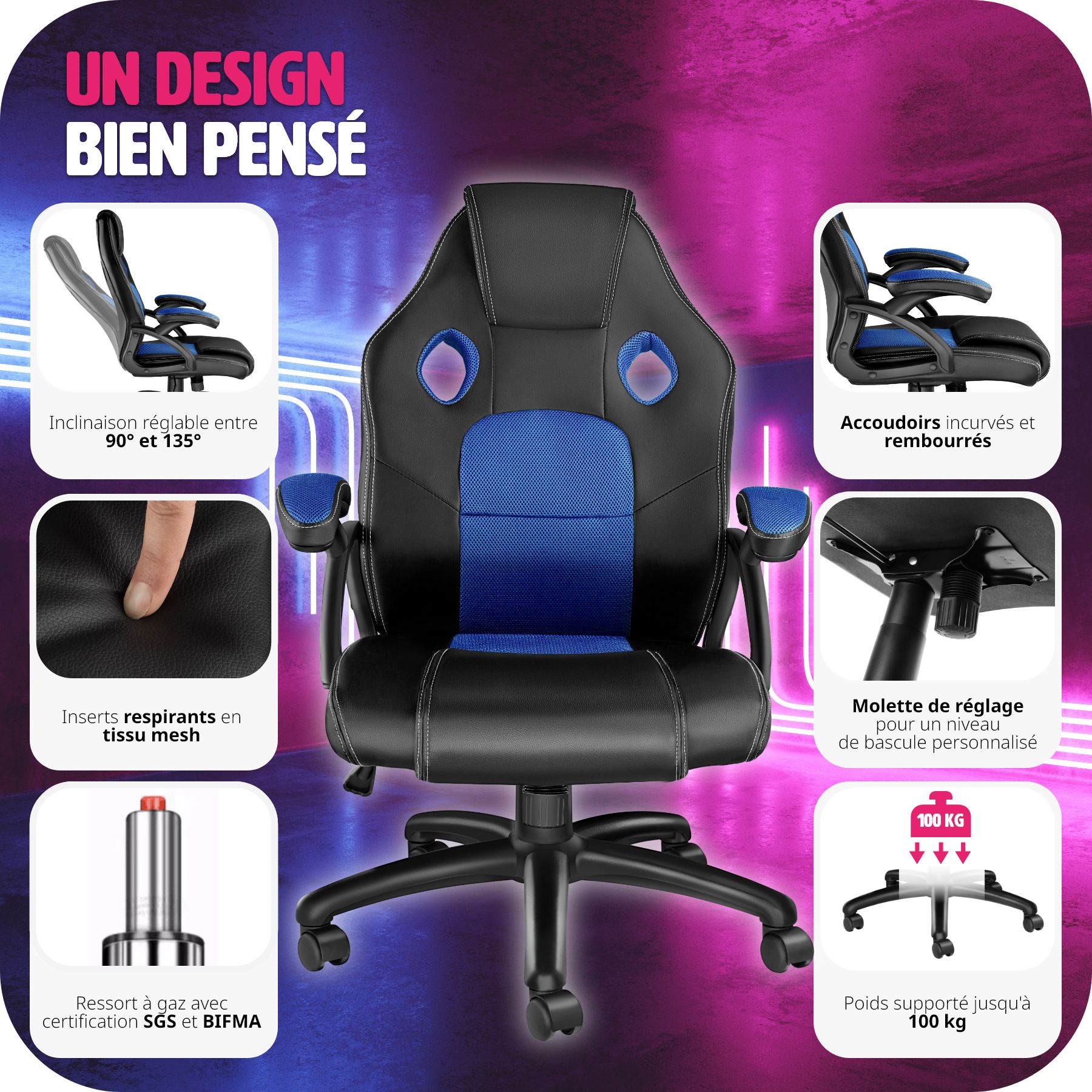 Libellé TECTAKE Chaise de bureau forme ergonomique noir/bleu