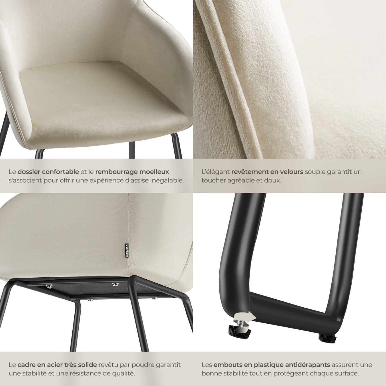 | Libellé | TECTAKE Chaise de salle à manger en velours rembourré Lot de 2 Velours crème/noir |