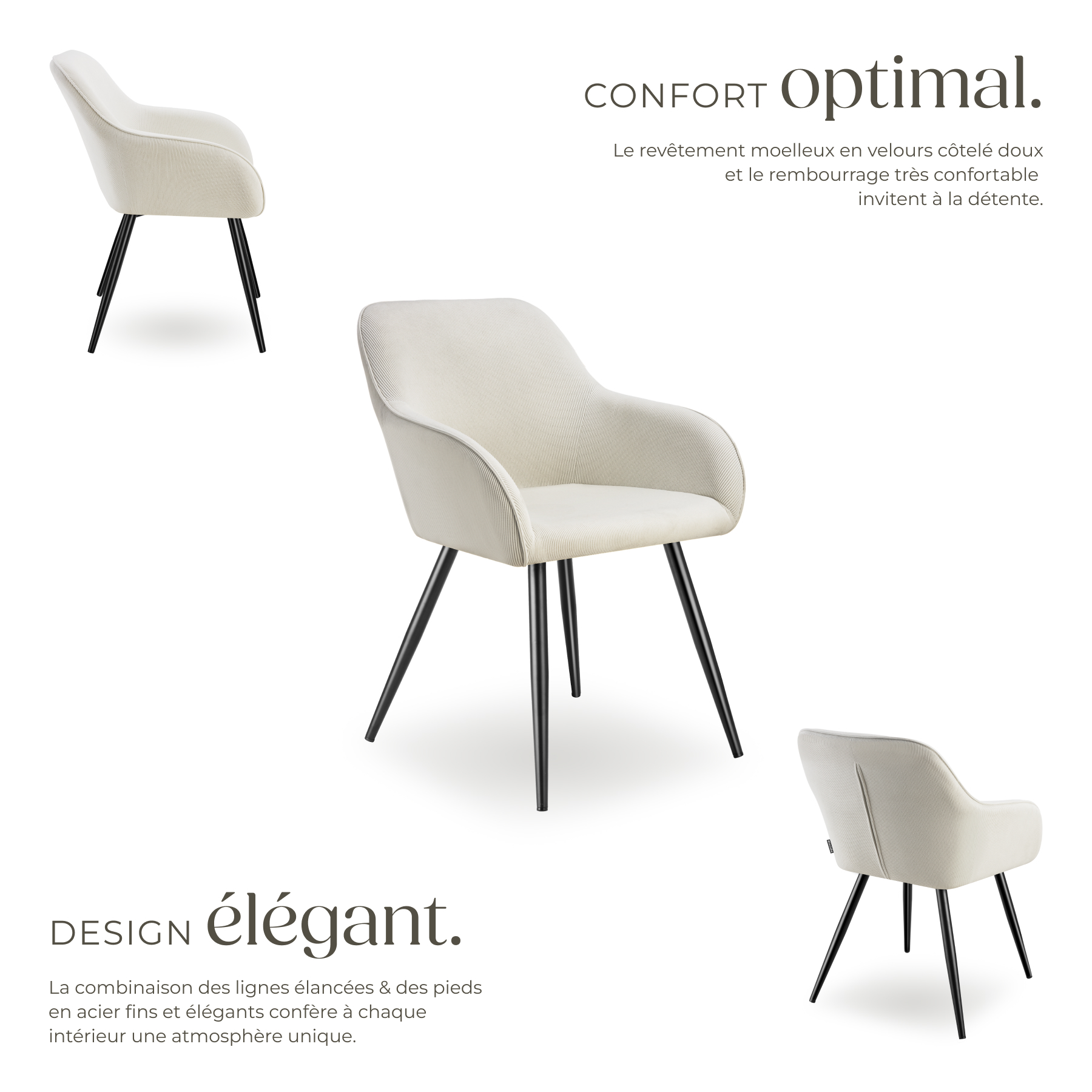 - Chaises élégantes avec revêtement en velours côtelé doux