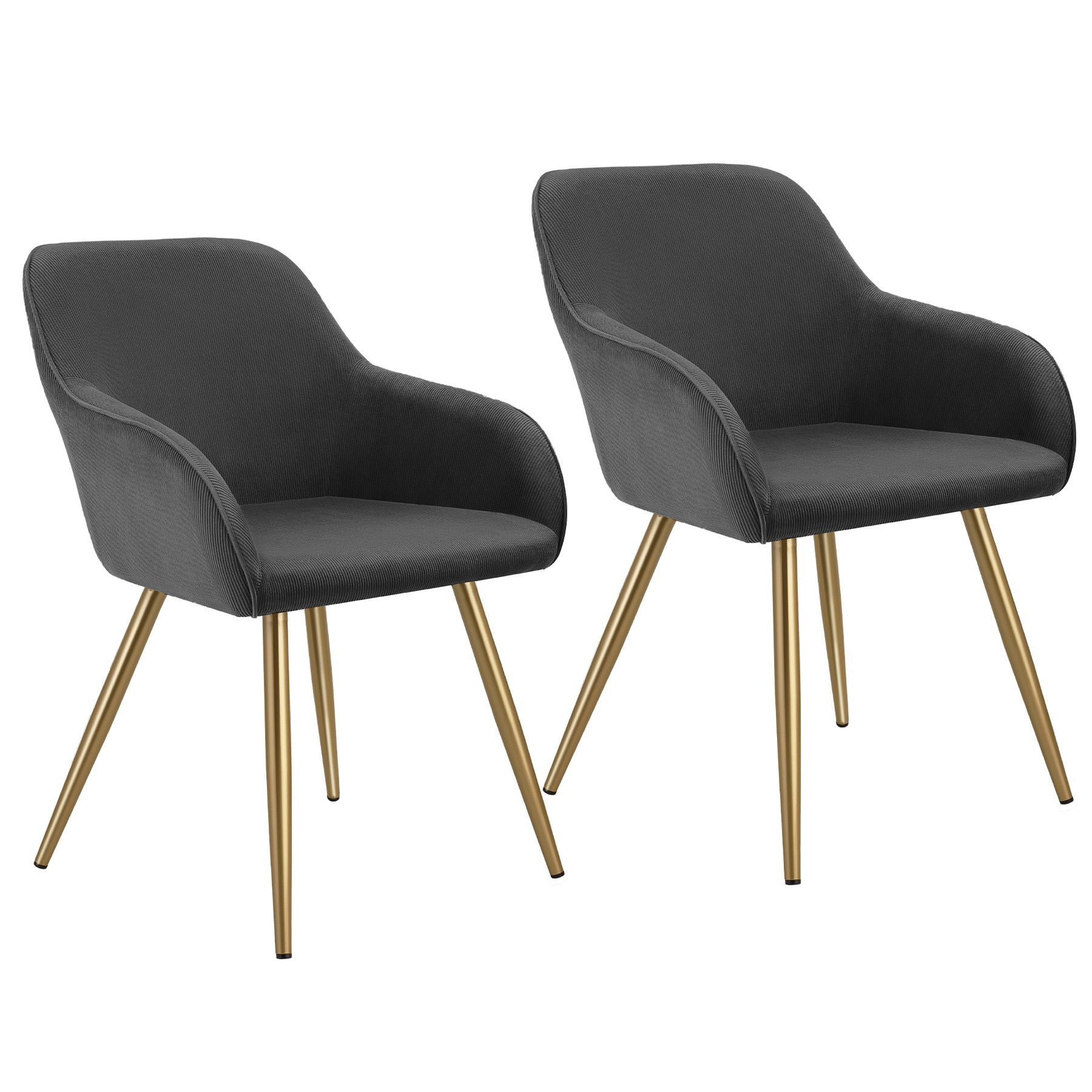 TECTAKE Chaise de salle à manger rembourrée en velours côtelé Lot de 2 gris anthracite/jaune or