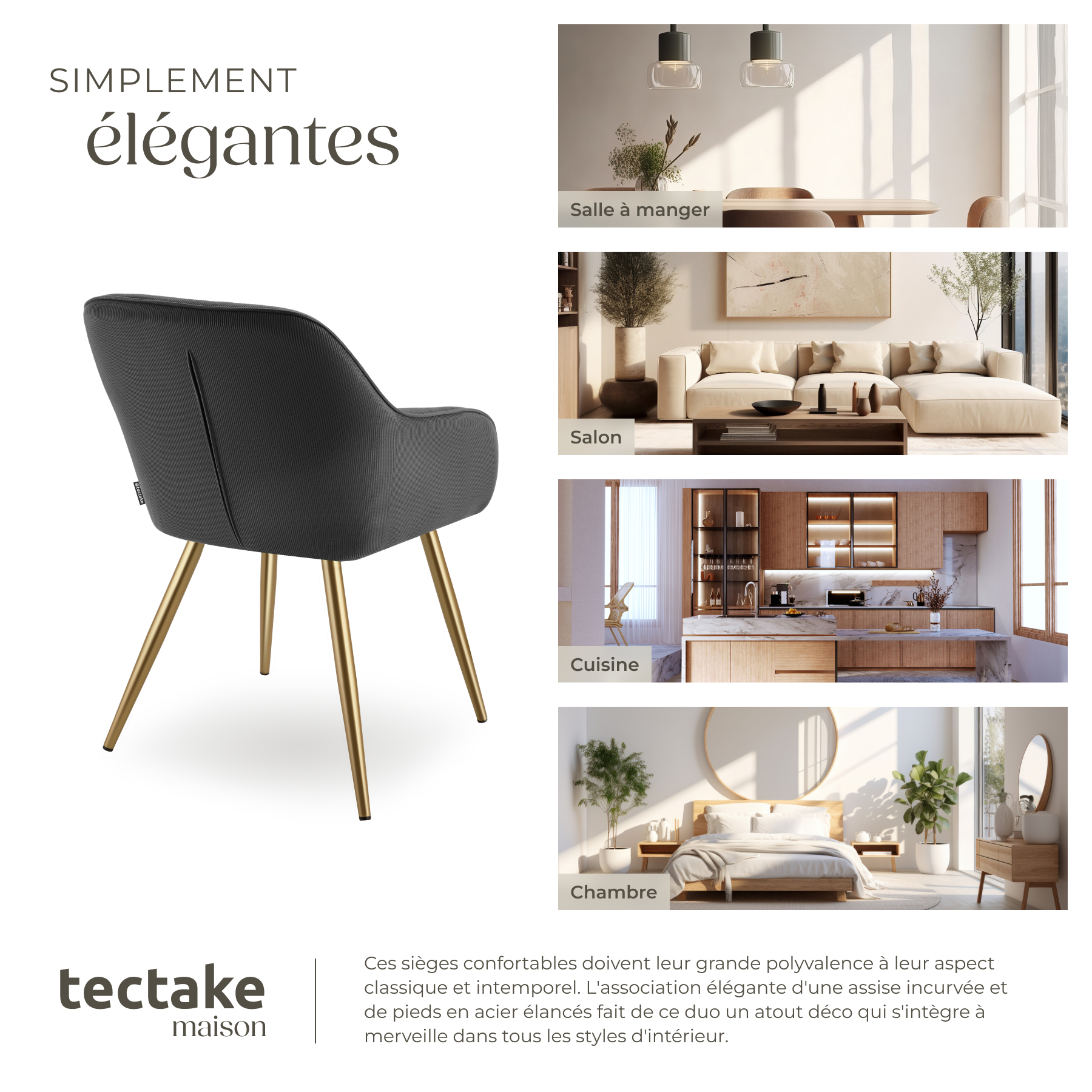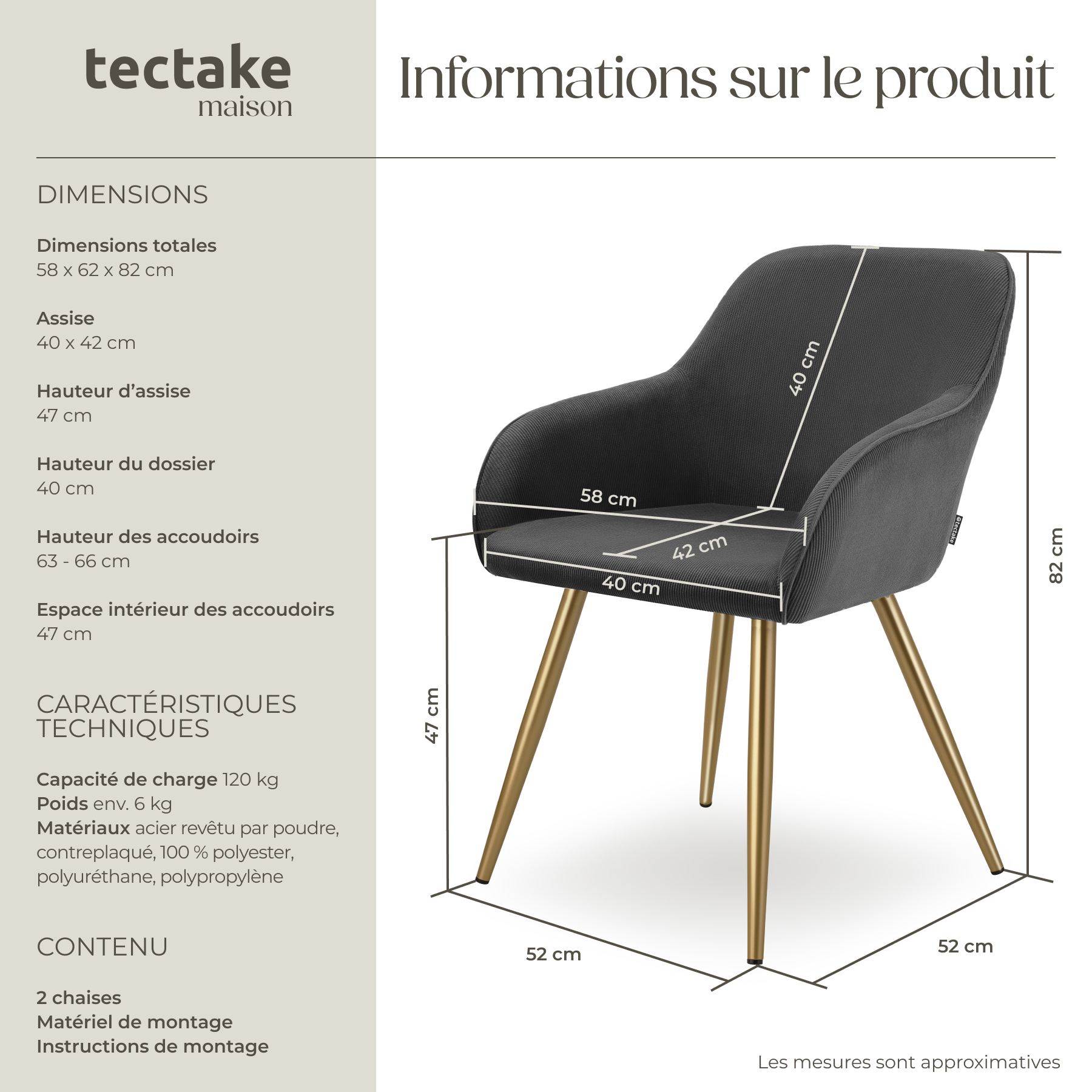 Libellé TECTAKE Chaise de salle à manger rembourrée en velours côtelé Lot de 2 gris anthracite/jaune or