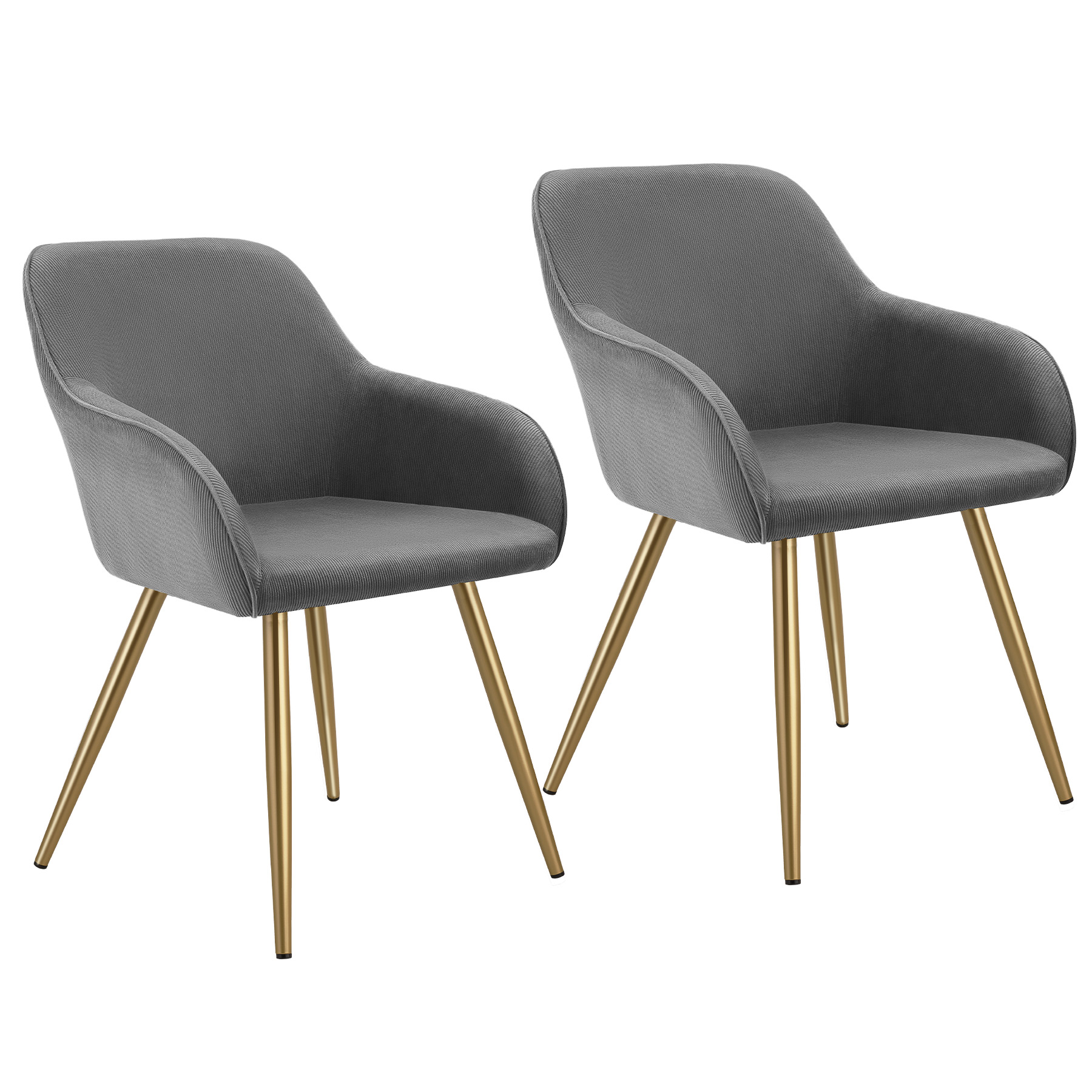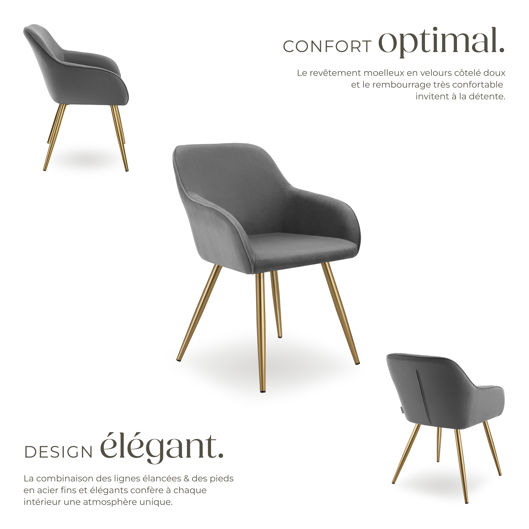 TECTAKE Chaise de salle à manger rembourrée en velours côtelé Lot de 2 gris/jaune or