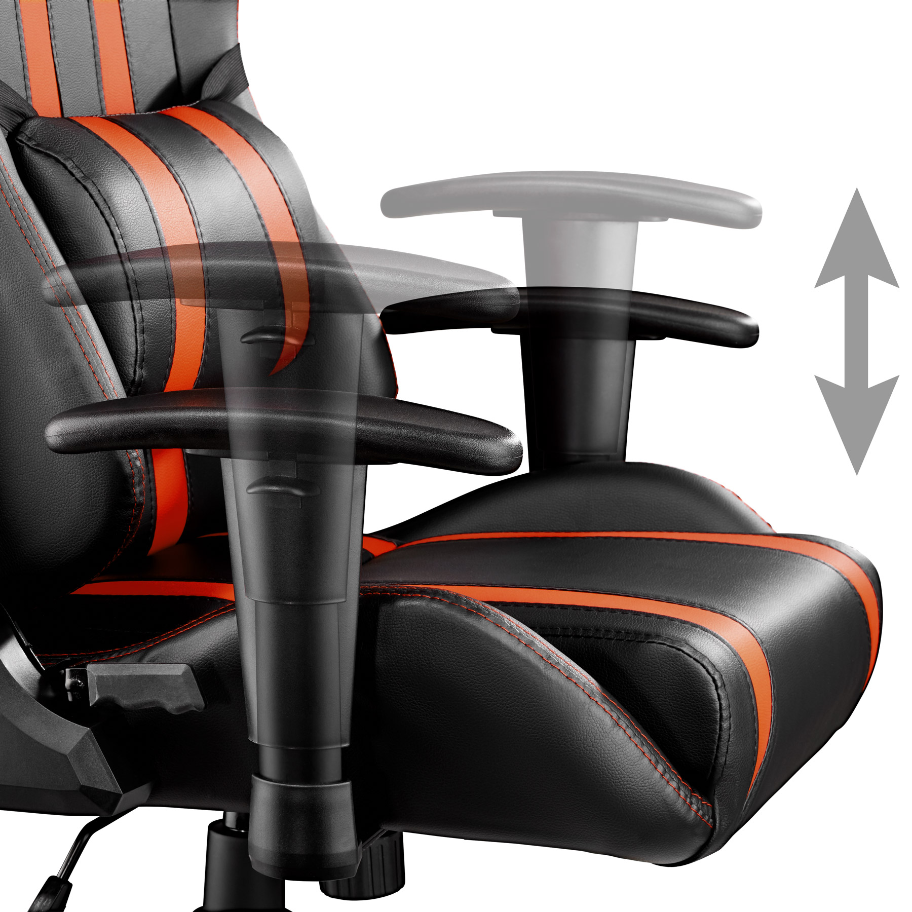 - Réglage de la hauteur des accoudoirs : environ 8 cm (58,5-66,5 cm à 66,5-74,5 cm).