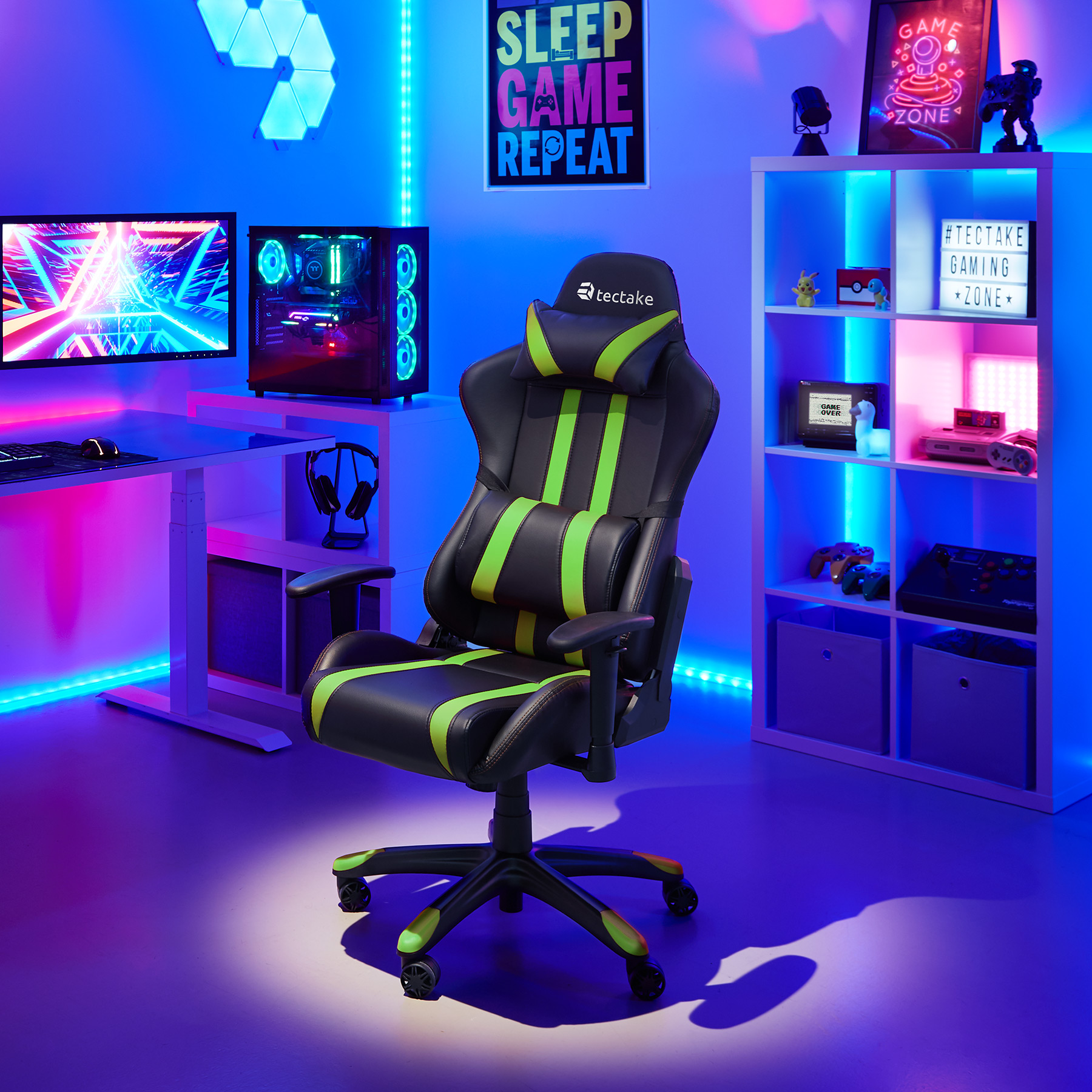 | Libellé | Tectake Chaise gamer avec coussin de tête et lombaires - noir/vert |