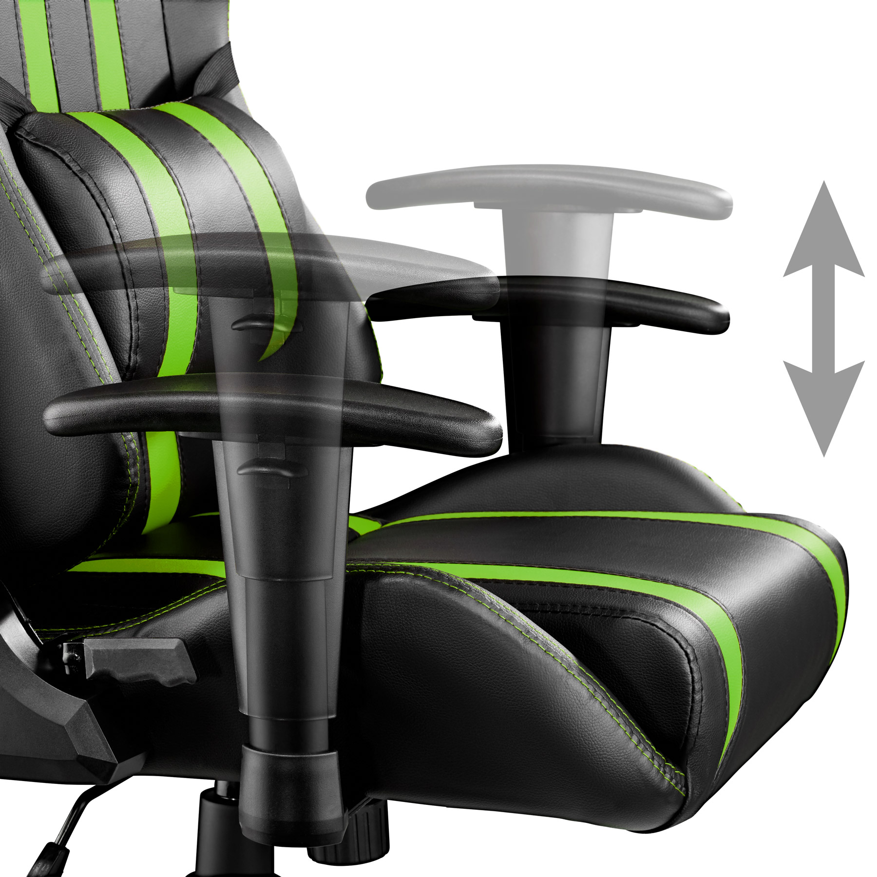 - Réglage de la hauteur des accoudoirs : environ 8 cm (58,5-66,5 cm à 66,5-74,5 cm).