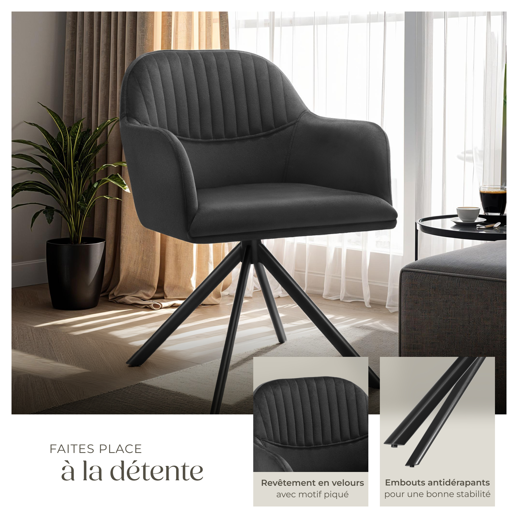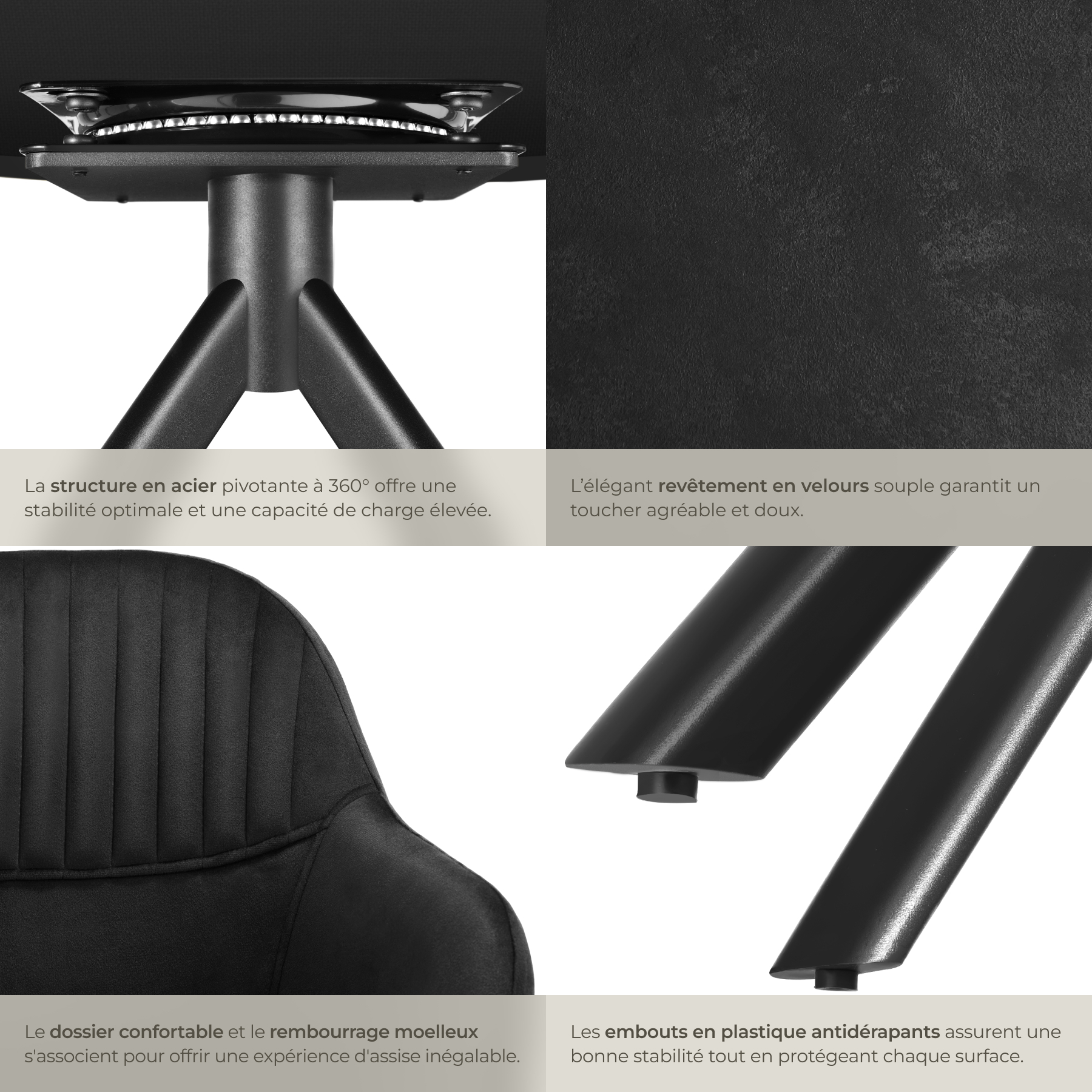 - ensemble de 2 chaises pivotantes avec accoudoirs confortables et revêtement en velours