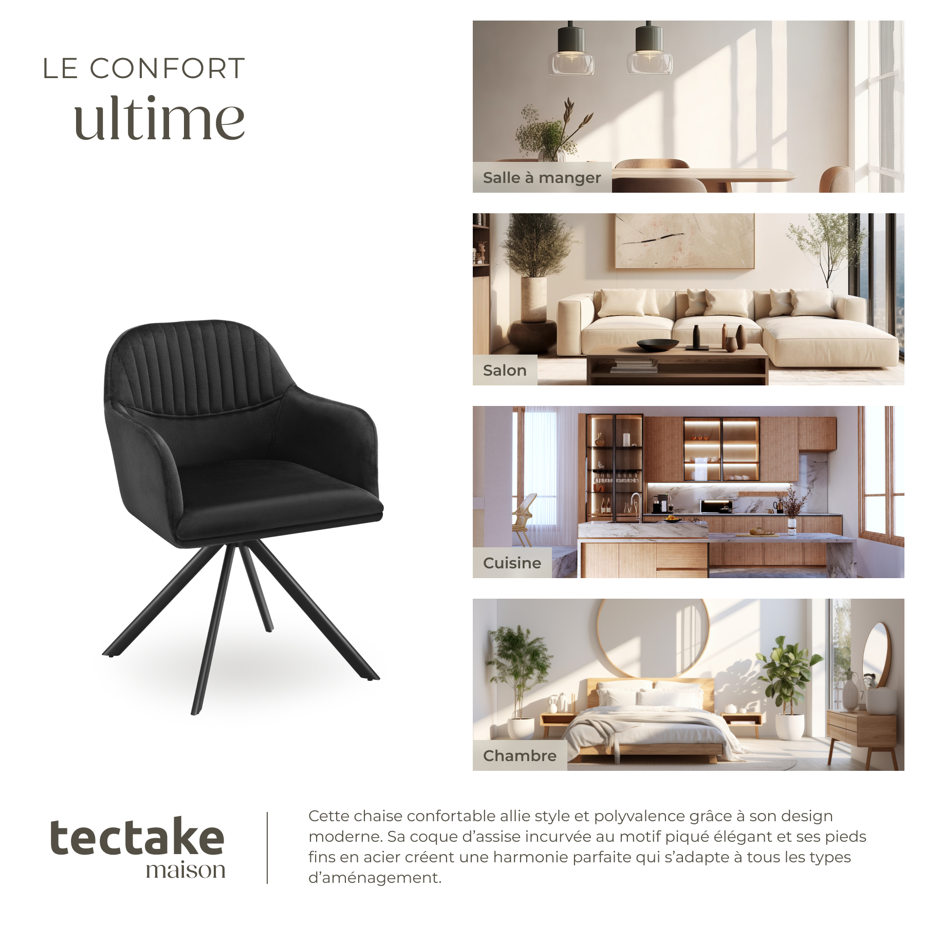 | Libellé | TECTAKE Chaise pivotante en velours rembourrée Lot de 2 noir/noir |