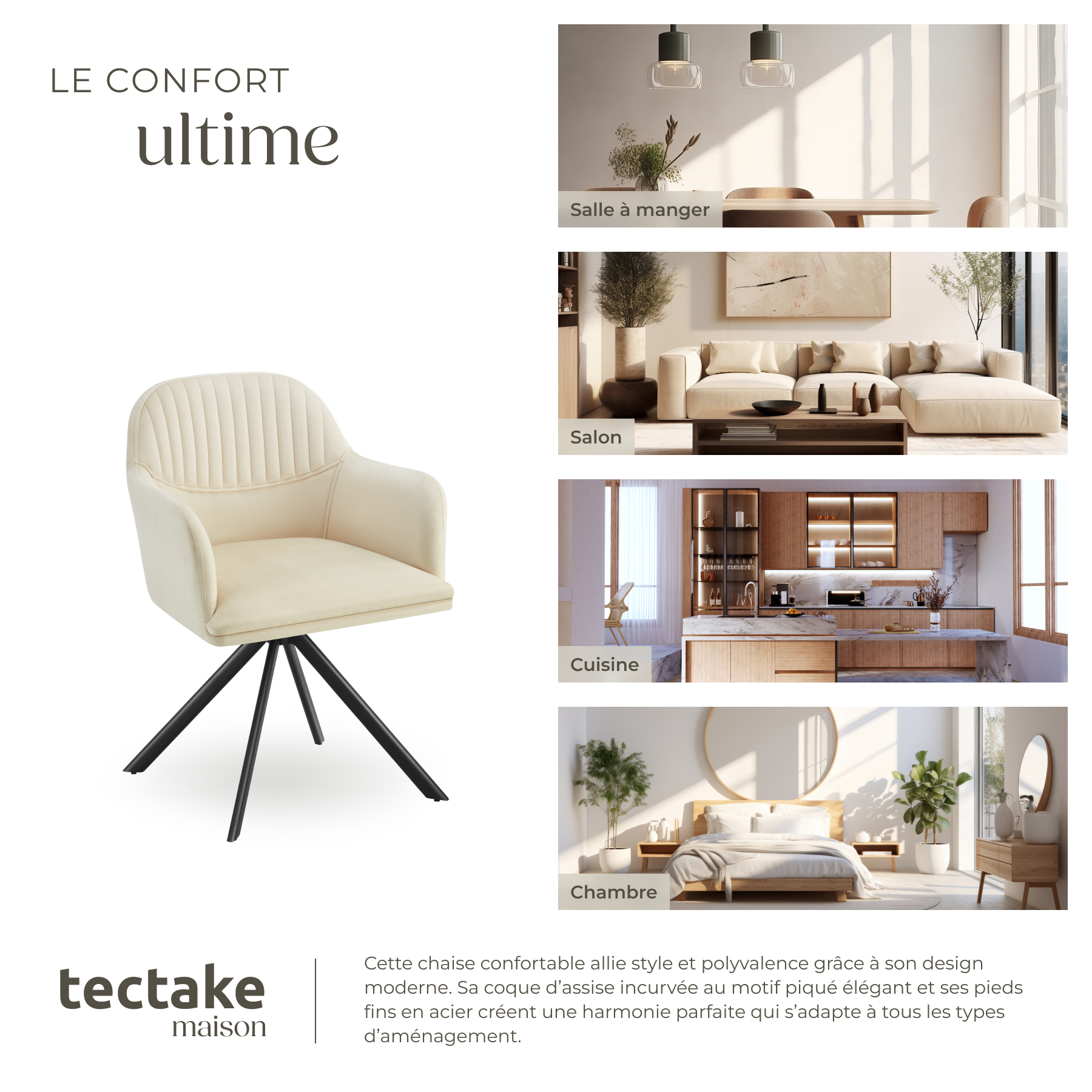 TECTAKE Chaise pivotante en velours rembourrée Lot de 6 crème/noir