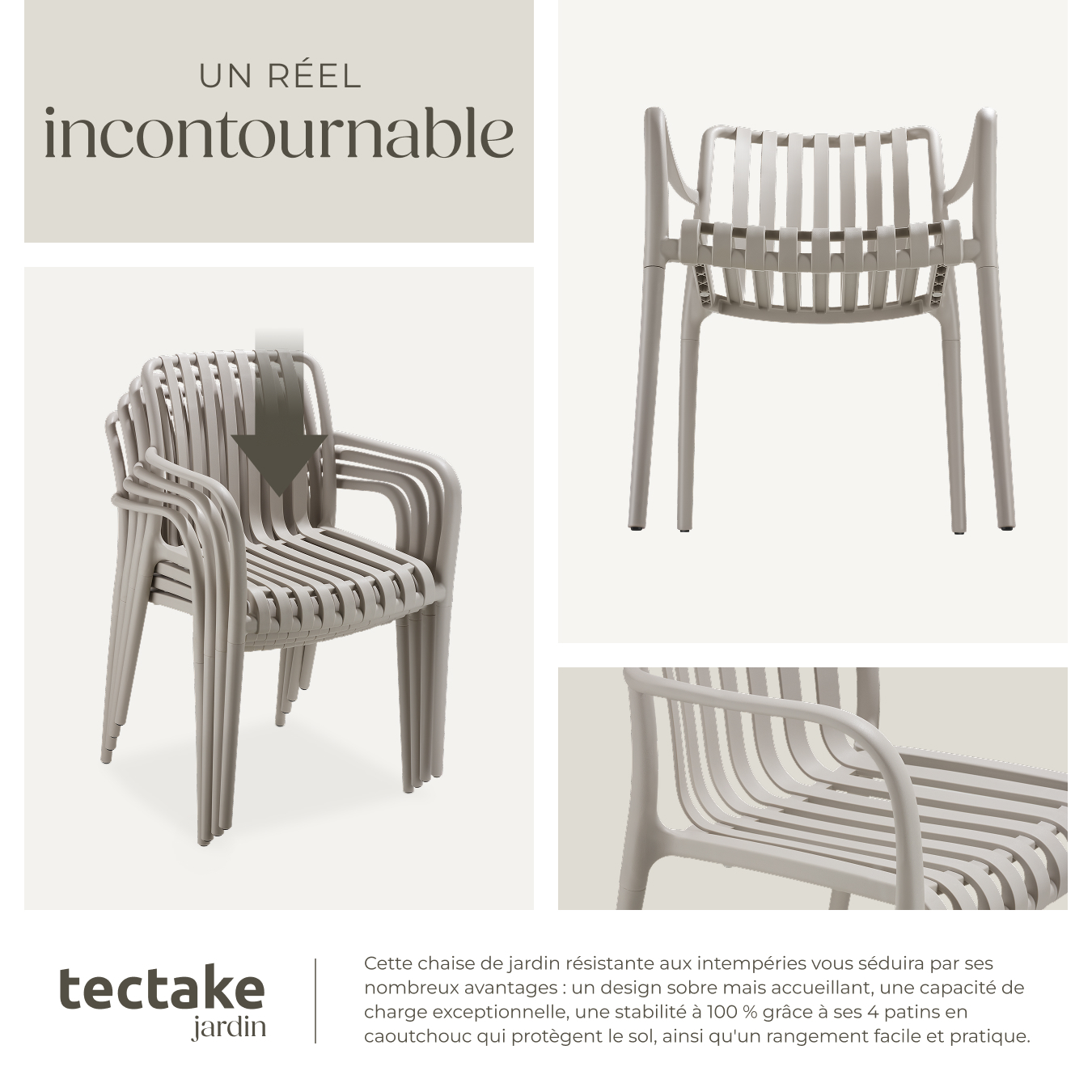TECTAKE Chaises de jardin résistant aux intempéries et aux UV Ensemble de 2 pièces taupe
