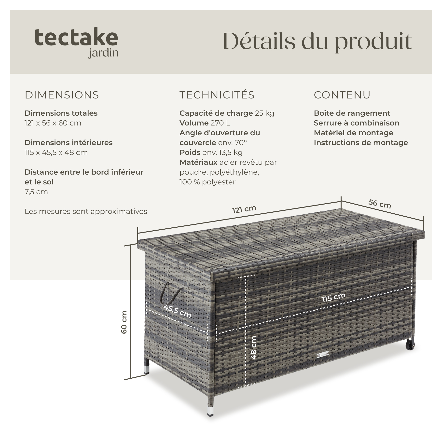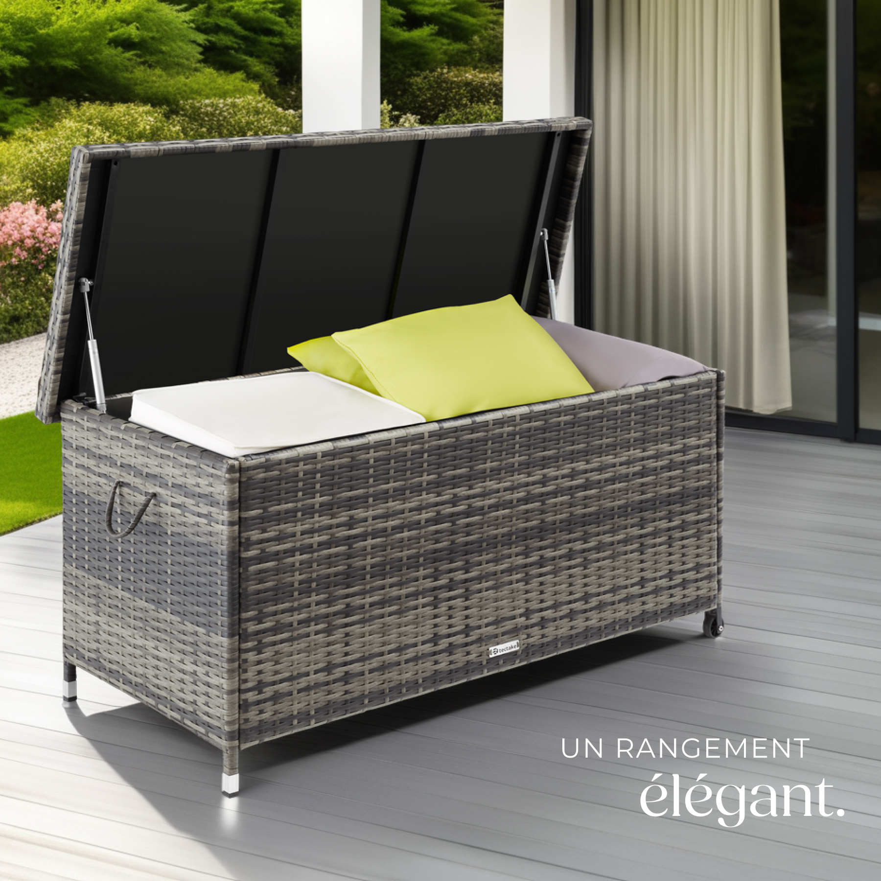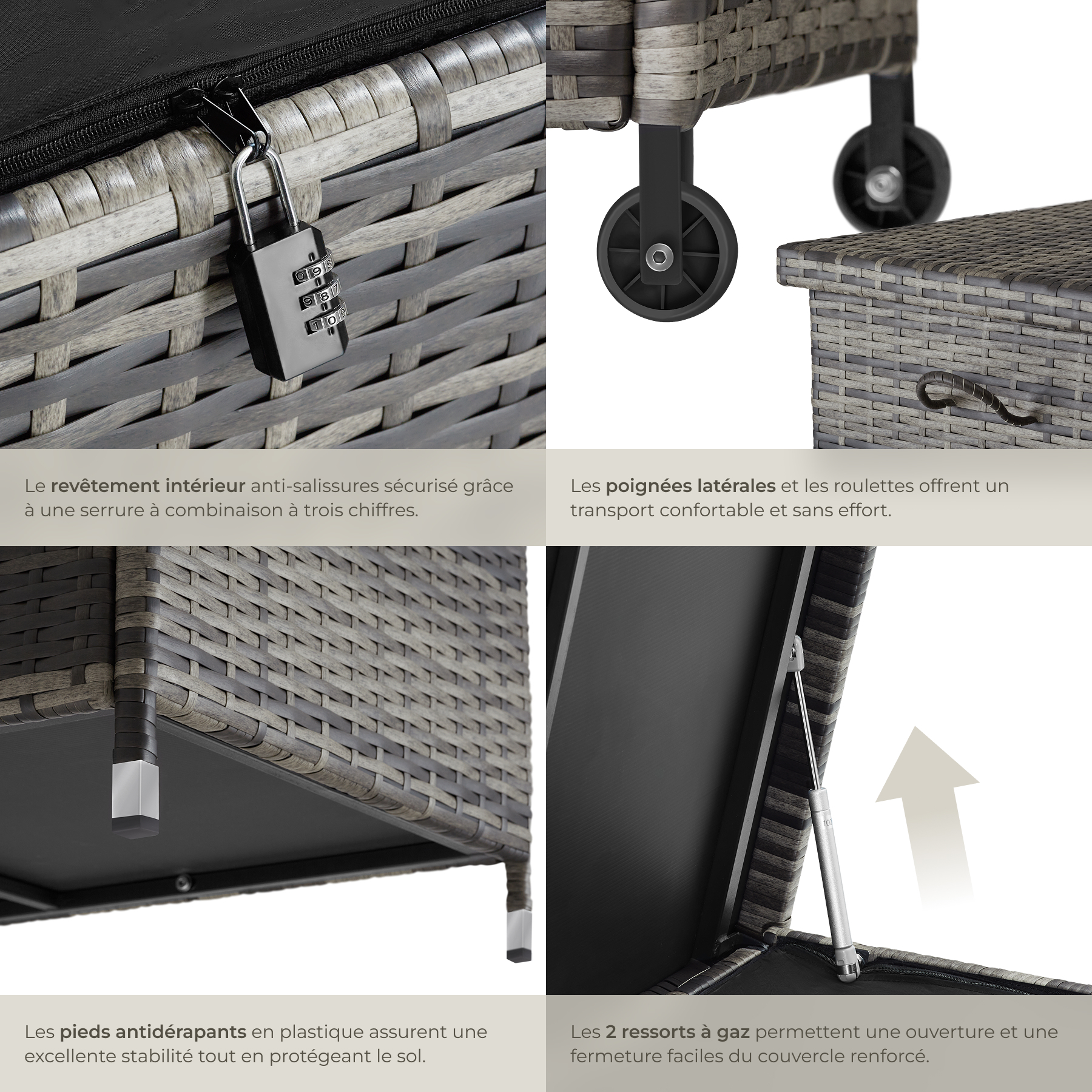 Libellé TECTAKE Coffre de jardin pour coussins 270 l, avec tressage en rotin gris
