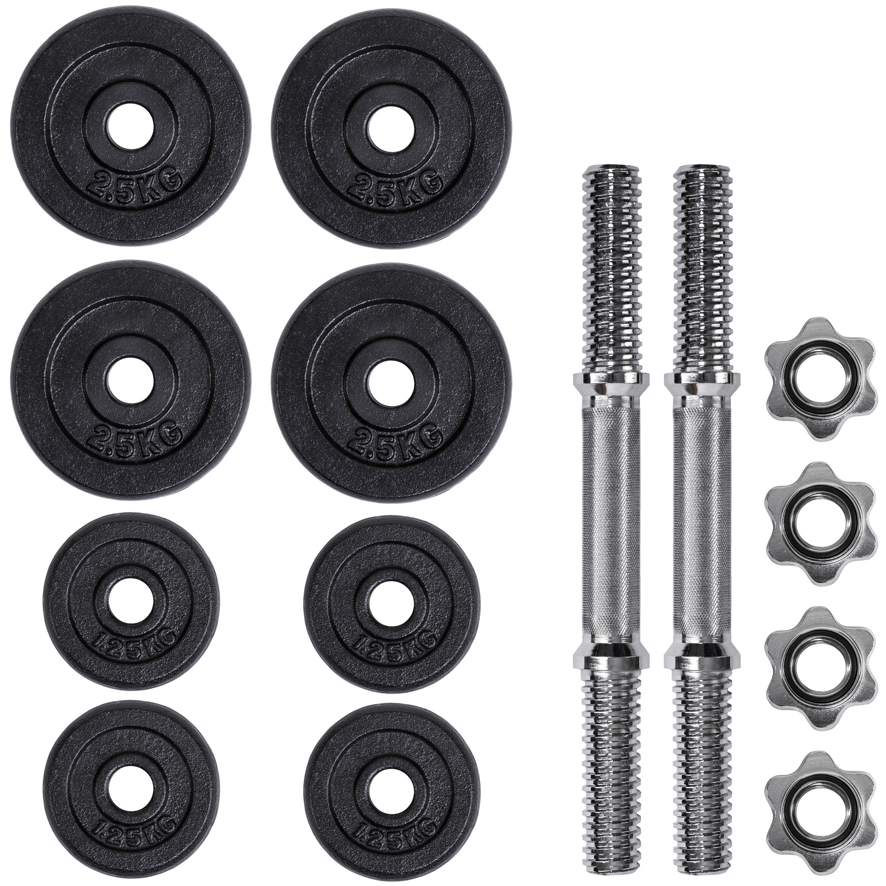 2 Haltères Courts et 8 Poids, Set d'Haltères de Musculation en Acier et en Fonte Noir TECTAKE. Avec ces haltères, vous n'avez même plus besoin d'aller à la salle de sport ! Vous pouvez effectuer vos séances de musculation chez vous grâce à ce set d'haltères courts. La musculation est une des meilleures méthodes pour garder la forme et prévenir de nombreuses maladies. Les muscles, les tendons, les ligaments, les articulations et le tissu conjonctif sont renforcés en faisant divers exercices de musculation. Les disques d'haltères sont fixés de manière sûre au moyen de bagues de serrage en forme d'étoile.