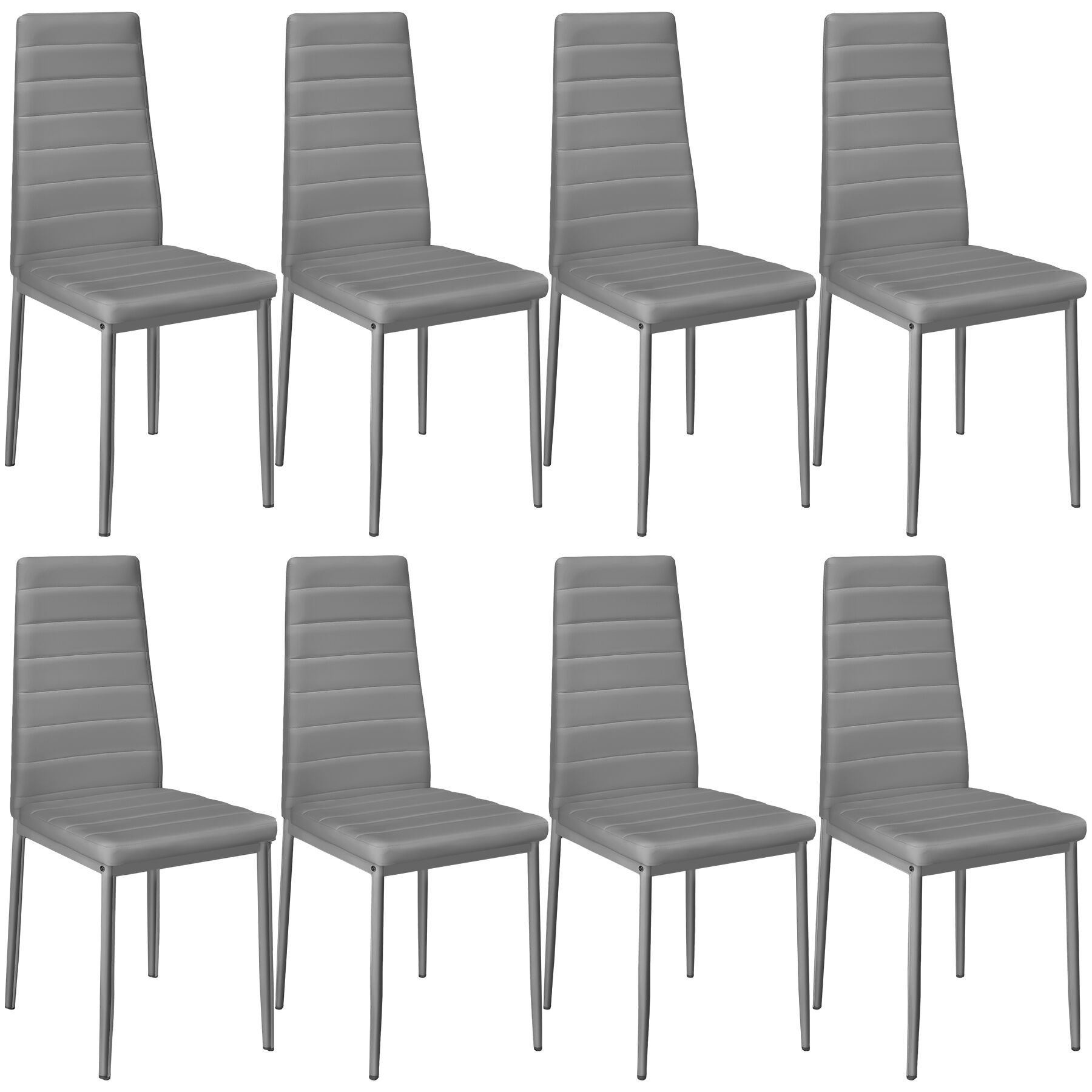 TECTAKE Ensemble de chaises de salle à manger rembourrées avec revêtement aspect cuir Lot de 8 gris