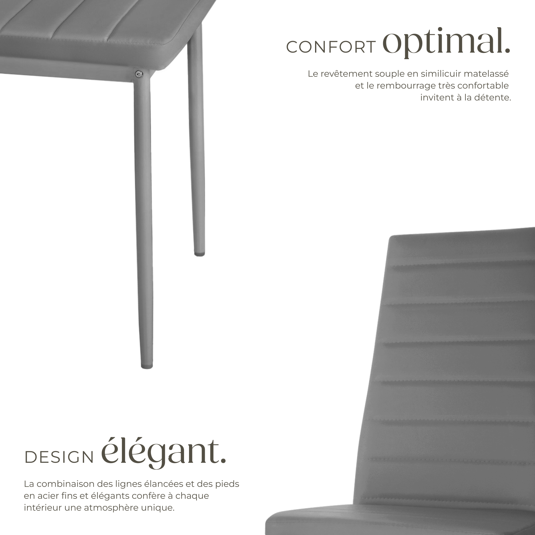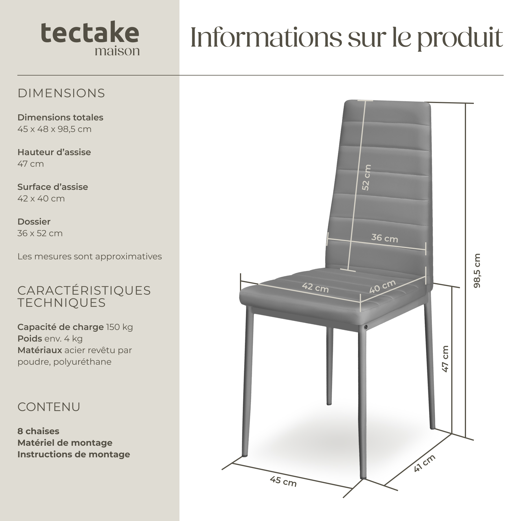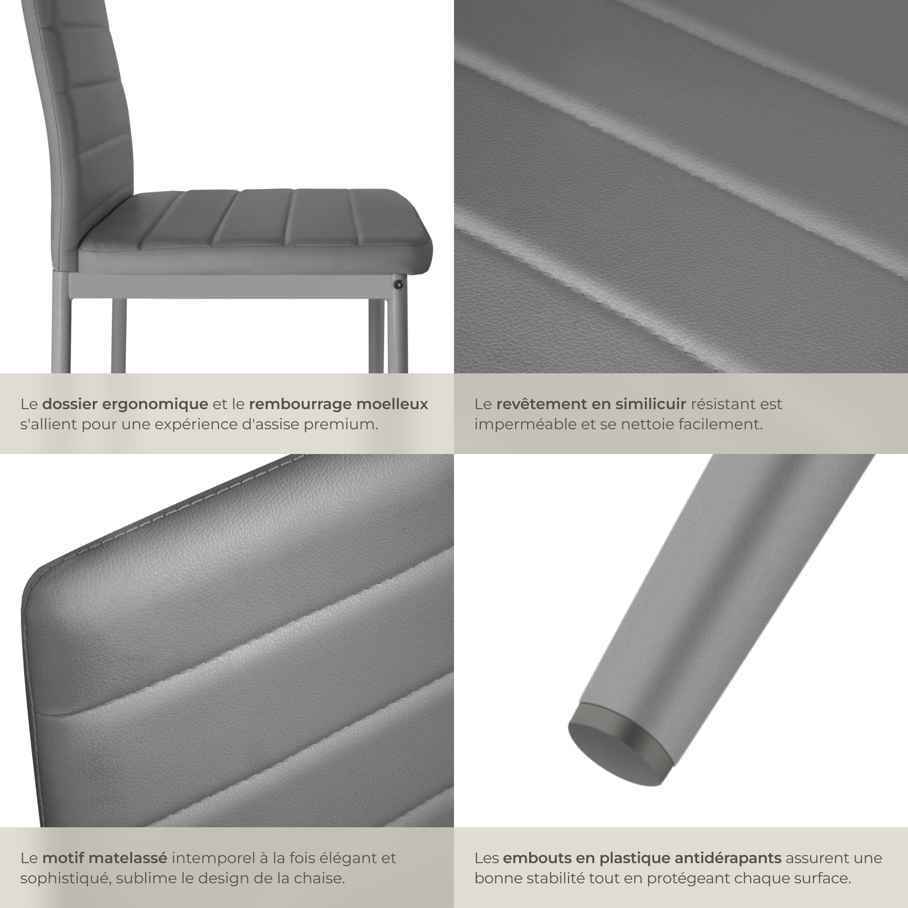 | Libellé | TECTAKE Ensemble de chaises de salle à manger rembourrées avec revêtement aspect cuir Lot de 8 gris |