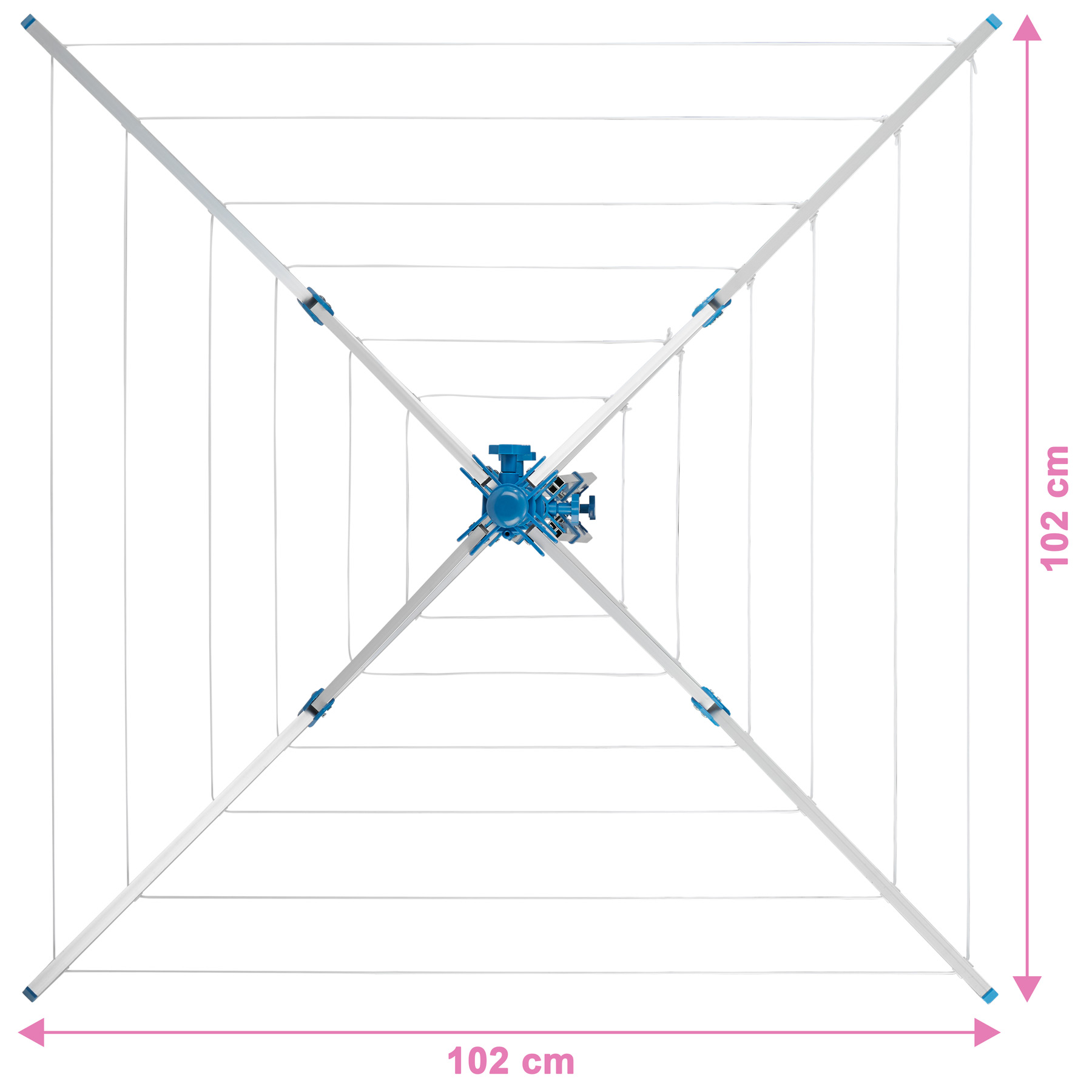 Etendoir, Séchoir à Linge Réglable à 4 Pieds, Etendoir d'Extérieur Parapluie en Aluminium 102 cm x 102 cm x 160 cm TECTAKE. Vous ne savez plus où faire sécher votre linge ? Ce séchoir parapluie offre beaucoup de place pour étendre tous vos vêtements. Pour permettre d'étendre et de ramasser votre linge en toute facilité, les quatre bras porteurs se règlent en continu à la hauteur souhaitée. Les quatre pieds assurent une bonne stabilité. Cet étendoir est prêt à l'utilisation en un tour de main. Après usage, vous pouvez le replier aisément pour le ranger et le transporter. Au camping comme chez vous, laissez votre linge sécher naturellement sous l'effet du soleil et du vent sur ce séchoir à linge rotatif facile d'utilisation.