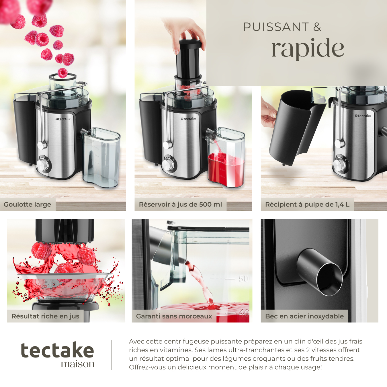 | Libellé | TECTAKE Extracteur de jus capacité de 500ml, 600 W argent |
