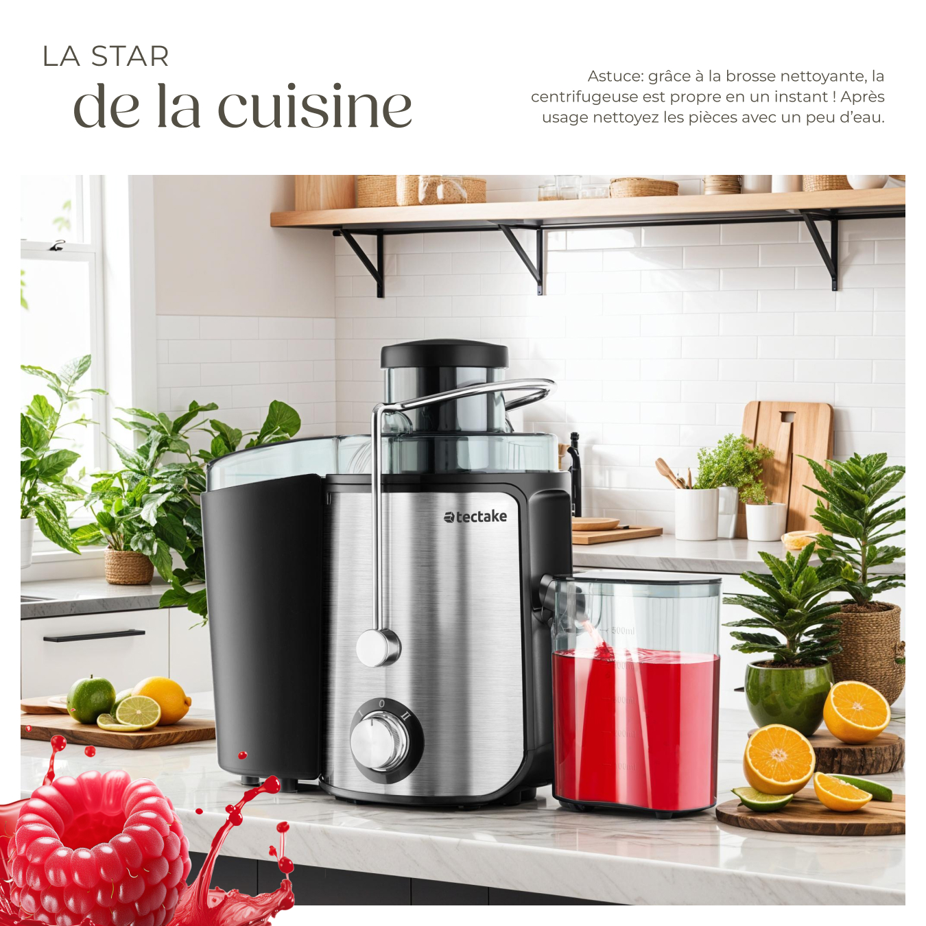 L'extracteur de jus Frufi de tectake est un incontournable pour tous ceux qui attachent de l'importance à la fraîcheur, au goût et à la qualité – que ce soit pour un boost de vitamines le matin ou un délicieux jus pour toute la famille.