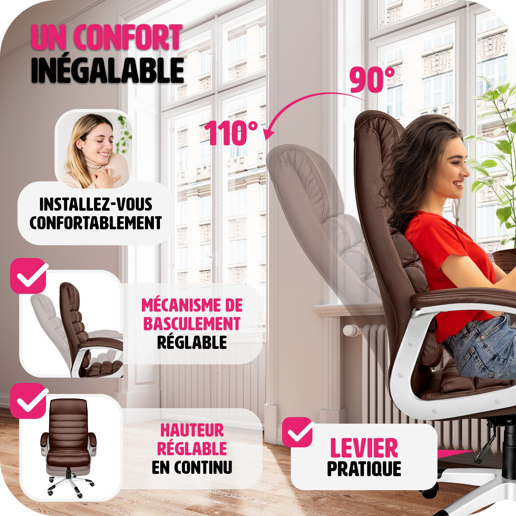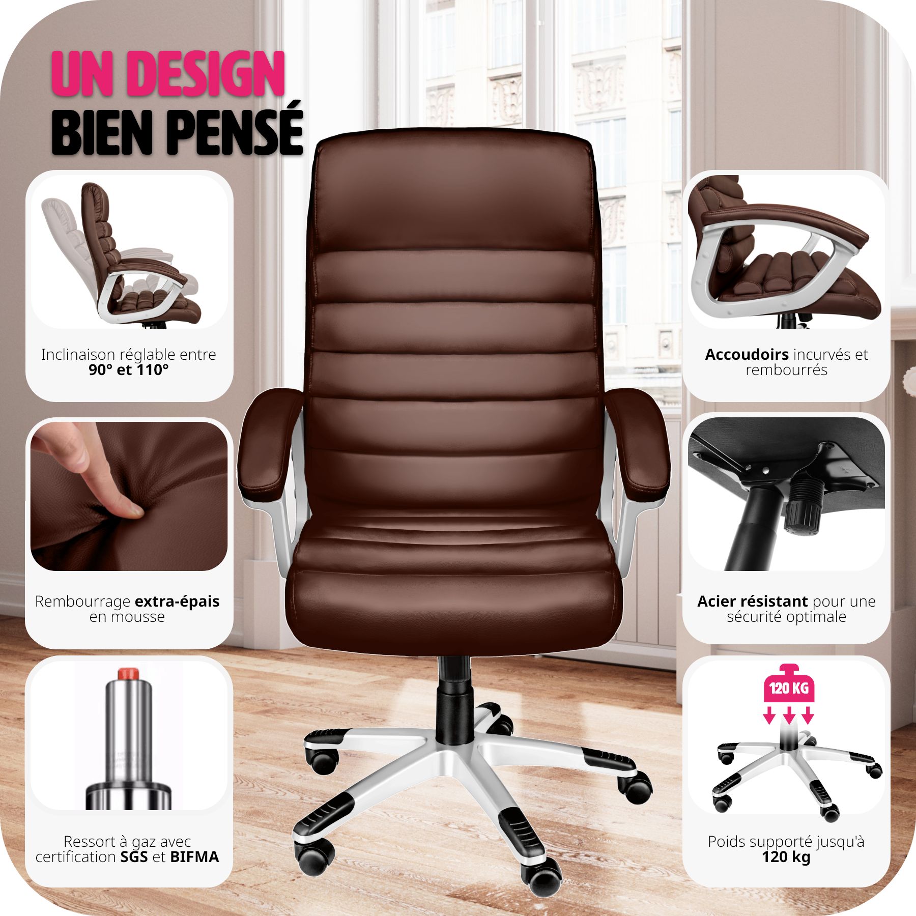 Chaise de Bureau, Fauteuil de Bureau PAUL - Ergonomique - Hauteur Réglable - Inclinable Pivotante TECTAKE. Ce fauteuil de bureau séduit par son apparence de Standing, son rembourrage ondulé très épais et sa forme ergonomique. Cette belle chaise de bureau vous assure un grand confort d'assise et contribue à éviter la tension, le stress, la fatigue.
