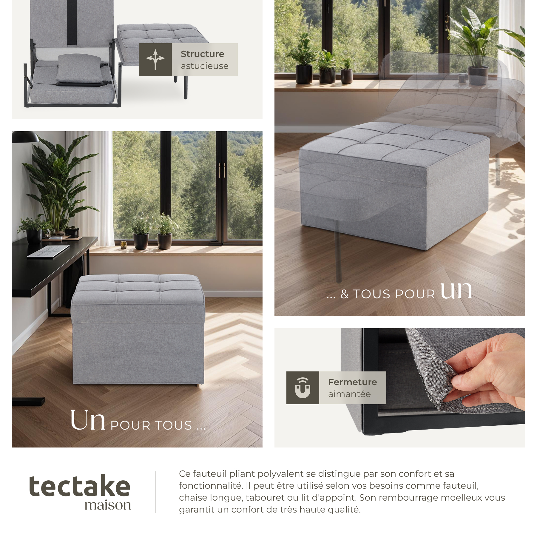TECTAKE Fauteuil de repos 4-en-1 comme tabouret, fauteuil, chaise longue ou lit gris