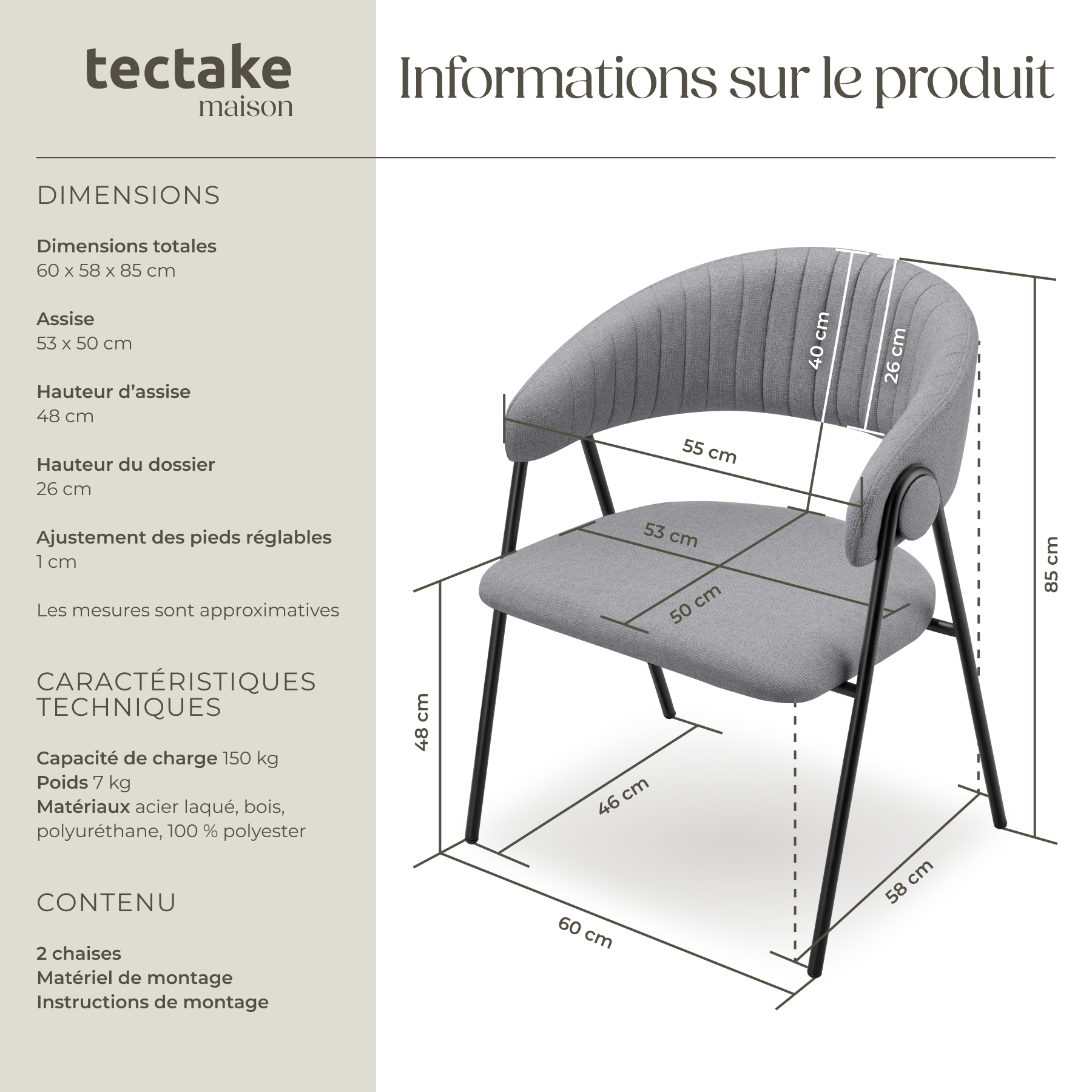 | Libellé | TECTAKE Fauteuil en tissu rembourré Lot de 2 gris |