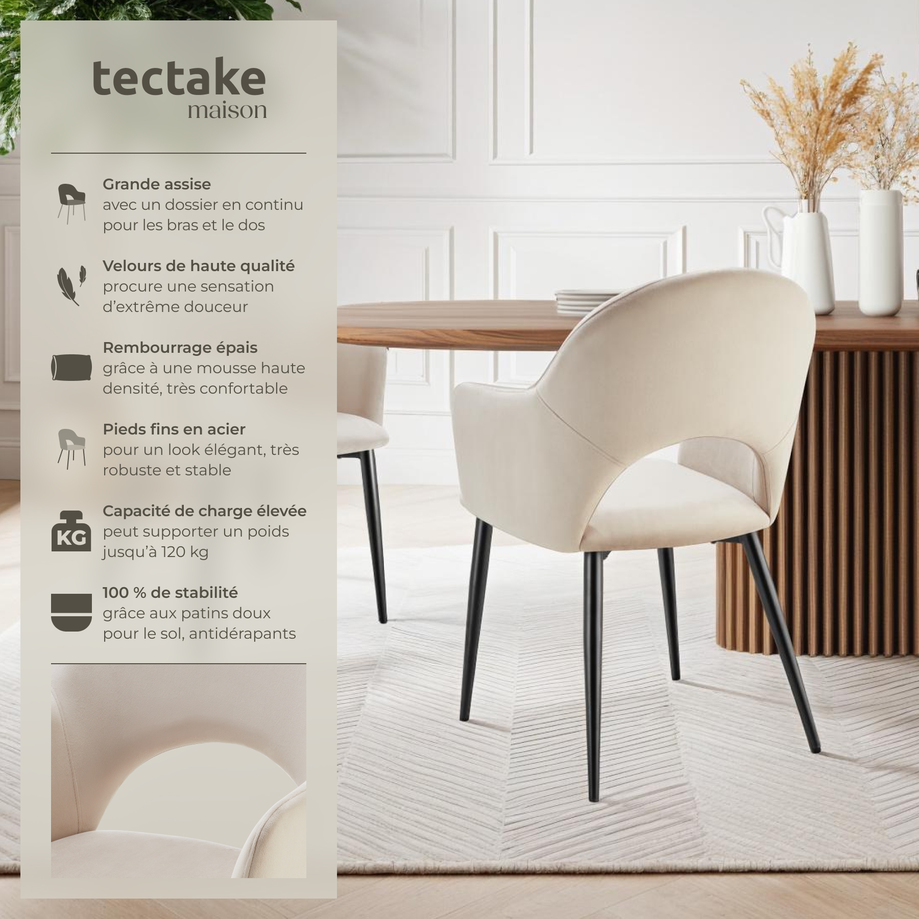 | Libellé | TECTAKE Fauteuil en velours et rembourré Lot de 4 crème |