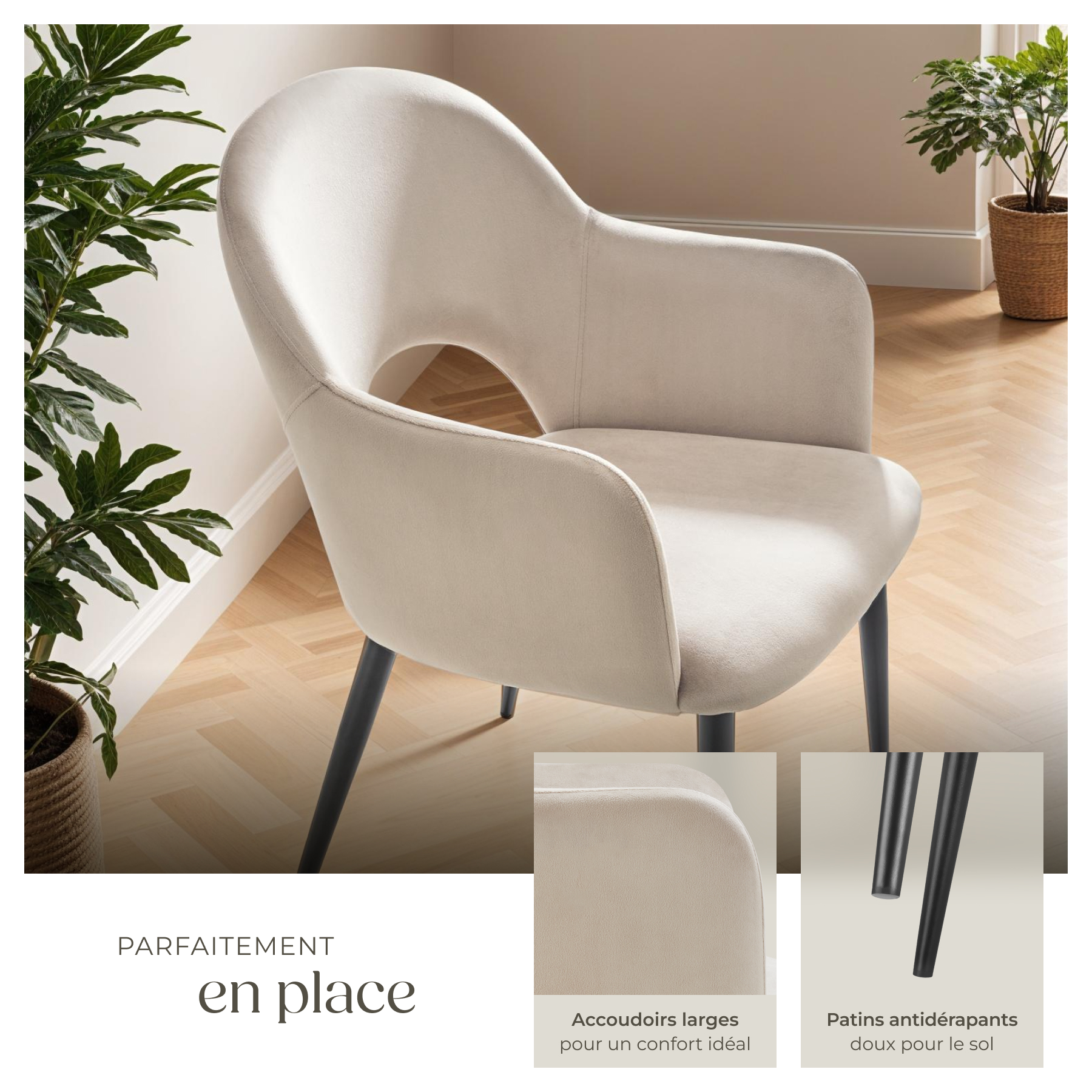 - Chaises élégantes avec accoudoirs et revêtement en velours doux