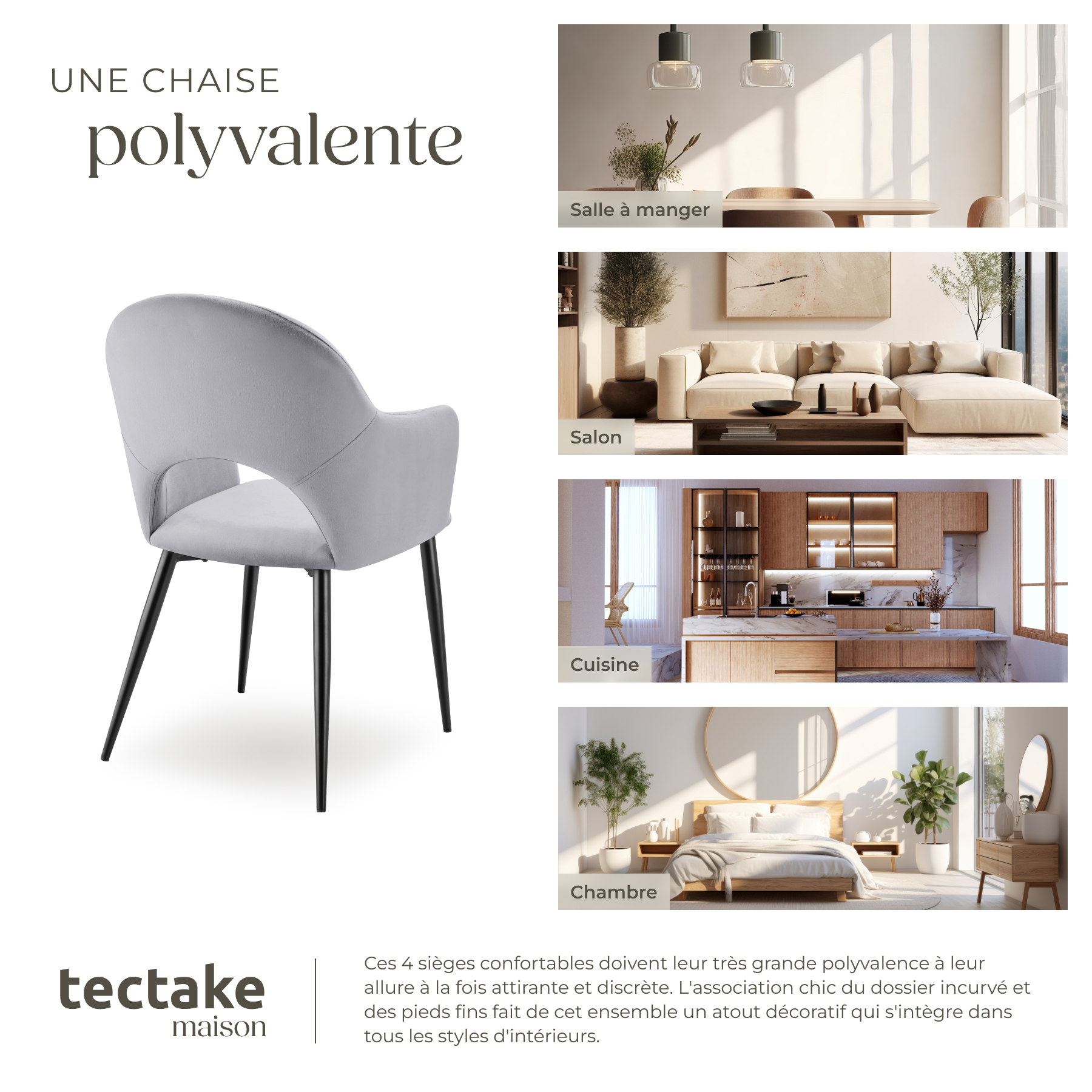 | Libellé | TECTAKE Fauteuil en velours et rembourré Lot de 4 gris clair |