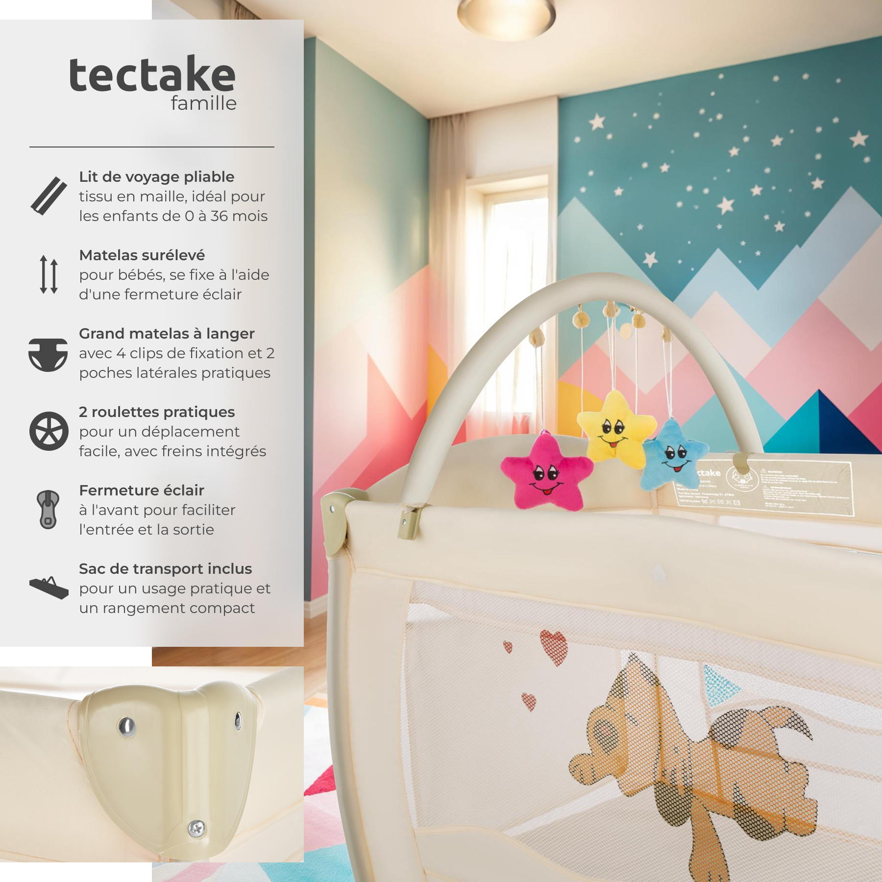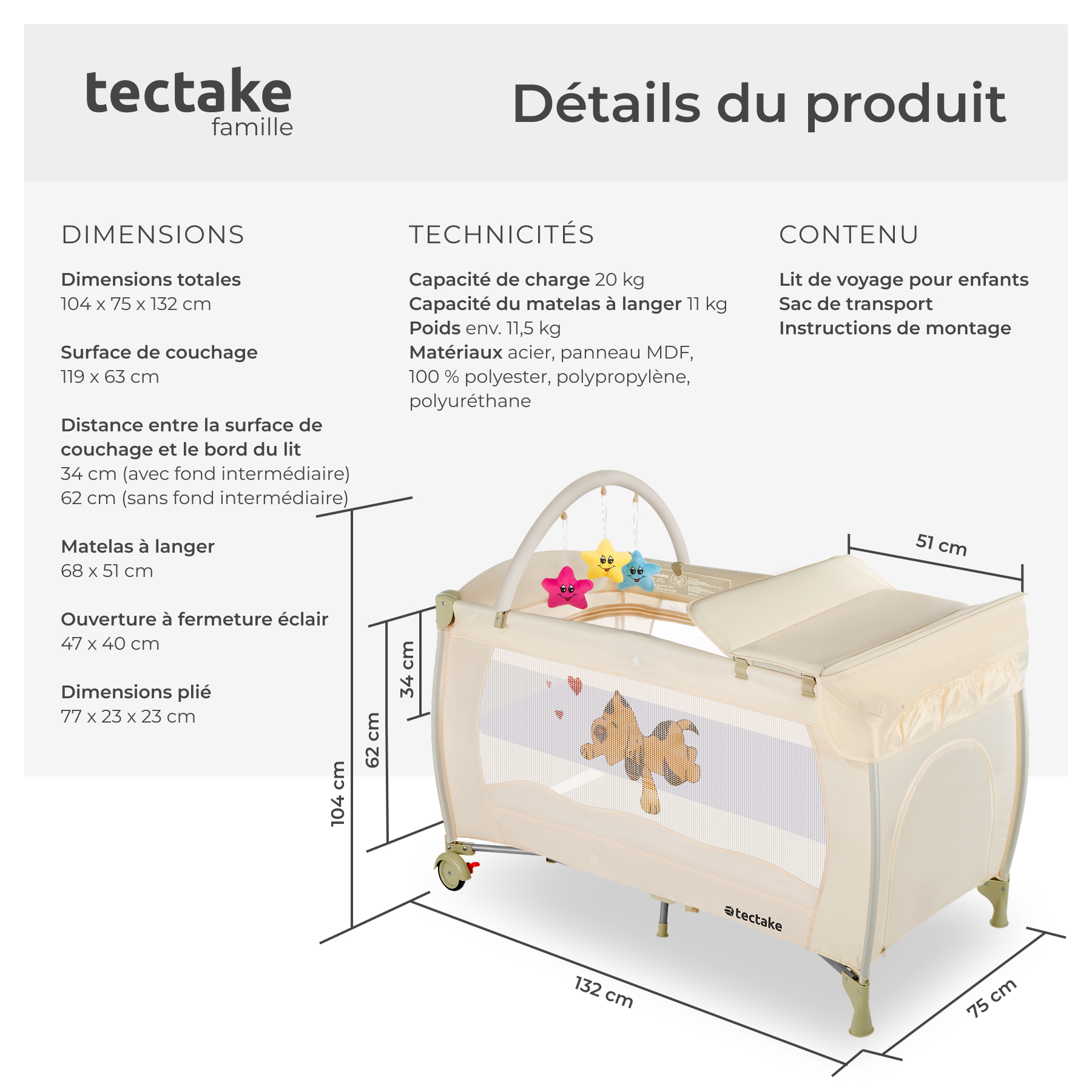 | Libellé | TECTAKE Lit de voyage pour enfants peu encombrant pliable et réglable en hauteur beige |