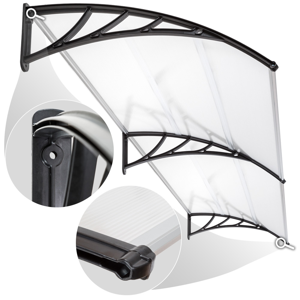 Marquise Auvent de porte TECTAKE. Grâce à ce superbe auvent vous ne resterez pas longtemps sous la pluie. L'auvent est simple et rapide à installer. Le toit en polycarbonate est transparent, indéformable et résiste aux chocs.