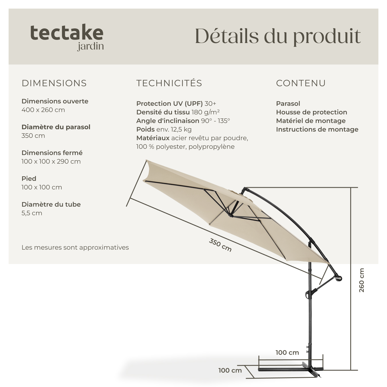 | Libellé | TECTAKE Parasol ø 350 cm beige |