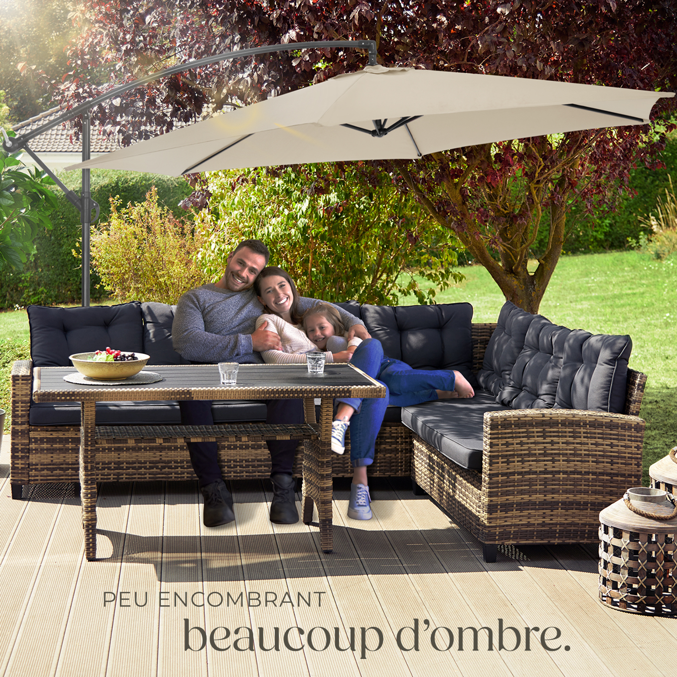 - Parasol excentré : 3,5 m de diamètre.